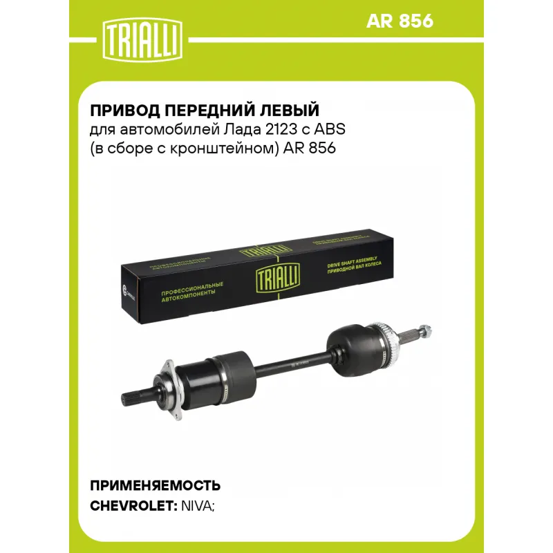 Привод передний левый для автомобилей Лада 2123 с ABS (в сборе с кронштейном) Характеристики: Артикул: AR 856 OEM номера: 21214221505130, 8450035401 Ось (сторона установки): передняя, левый Длина, мм: 701 Внешнее зубчатое соединение со стороны КПП (внутр.): 24 Количество зубьев ABS: 48 Внешнее зубчатое соединение со стороны колеса (внеш.): 24 Тип КПП: MT Гарантийный срок: 2 года/60 000 км Сопутствующий товар: ШРУСы: GO 213, GO 414, GO 415, GO 445, GO 447, GO 449 Сопутствующий товар: Приводы: AR 857 Сопутствующий товар: Ремонтные комплекты ШРУСов: FG 233, FG 434 Парный товар: AR 857 Количество на автомобиль: 1 Товарная линейка: BLACK Комплектация: Привод в сборе - 1 шт Гайка - 1 шт Гарантия: от 1 года.