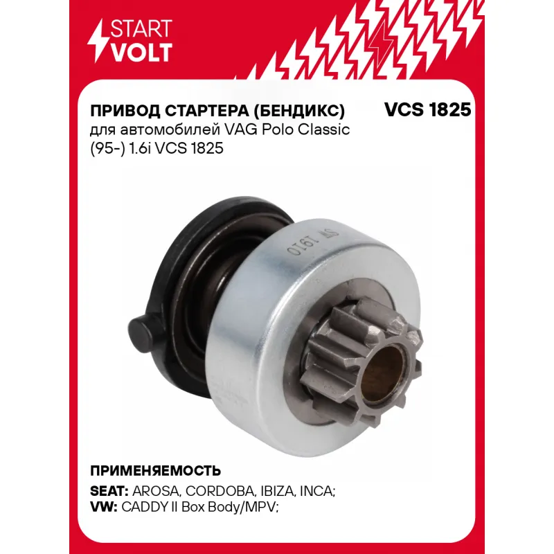 Привод стартера (бендикс) для автомобилей VAG Polo Classic (95-) 1.6i Характеристики: Артикул: VCS 1825 OEM номера: 0539113271, 053911335, 053 911 335 A, 9943565, 9947476, 90444708, 93170383, 93288939, 6203153, 90421771, 7701047290, 77 01 049 503, 1 006 209 584, 1 006 209 600, 1 006 209 686, 1 006 209 993, 1 006 209 997, 9001081033, F000AL1878, 5835 A8 Количество на автомобиль: 1 Число зубьев: 9 Внешний диаметр зубьев: 25,8 Направление вращения: по часовой стрелке Длина бендикса, мм: 53,5 Количество шлицов: 10 Комплектация: Паспорт изделия/гарантийный талон Привод стартера (бендикс) - 1 шт Гарантия: от 1 года.