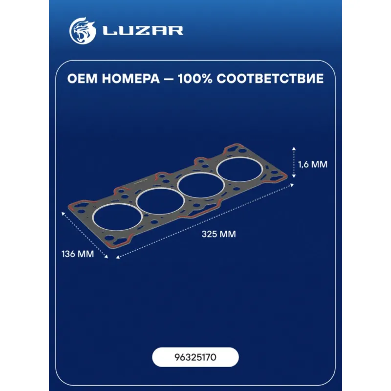Прокладка ГБЦ для а/м Daewoo Matiz (00-)/Chevrolet Aveo T200 (02-) 1.0i/1.2i [B10S;LY4] Характеристики: Артикул: LES 10505 OEM номера: 96325170 Ширина, мм: 136 Длина, мм: 325 Материал прокладки: безасбестовый композитный материал на металлическом каркасе Диаметр отверстий, мм: 69.5 Количество слоев: 1 покрытие прокладки: частичное силиконовое с двух сторон (красный цвет) Прокладка, толщина,мм: 1.6 Количество на автомобиль: 1 Комплектация: Прокладка - 1 шт Гарантия: от 1 года.
