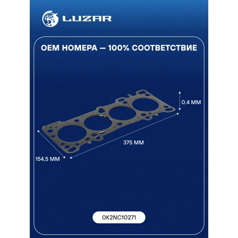 Прокладка ГБЦ для а/м Kia Spectra (00-) 1.6i [S6D] Характеристики: Артикул: LES 10801 OEM номера: 0K2NC10271 Ширина, мм: 154.5 Длина, мм: 375 Материал прокладки: сталь Диаметр отверстий, мм: 79 Количество слоев: 2 покрытие прокладки: Полное FKM с двух сторон Прокладка, толщина,мм: 0,4 Количество на автомобиль: 1 Комплектация: Прокладка - 1 шт Гарантия: от 1 года.