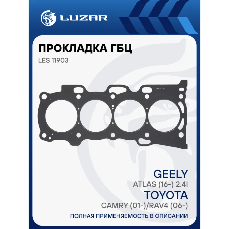 Прокладка ГБЦ для а/м Toyota Camry (01-)/RAV4 (06-)/Geely Atlas (16-) 2.4i [2AZ-FE] Характеристики: Артикул: LES 11903 OEM номера: 11115-28012, 11115-28011, 11115-28010, 1111528040, 1016050333, 1025006100 Ширина, мм: 197 Длина, мм: 424.50 Материал прокладки: сталь Диаметр отверстий, мм: 90 Количество слоев: 2 Прокладка, толщина,мм: 0.5 Количество на автомобиль: 1 покрытие прокладки: Полное FKM с двух сторон Комплектация: Прокладка - 1 шт Гарантия: от 1 года.