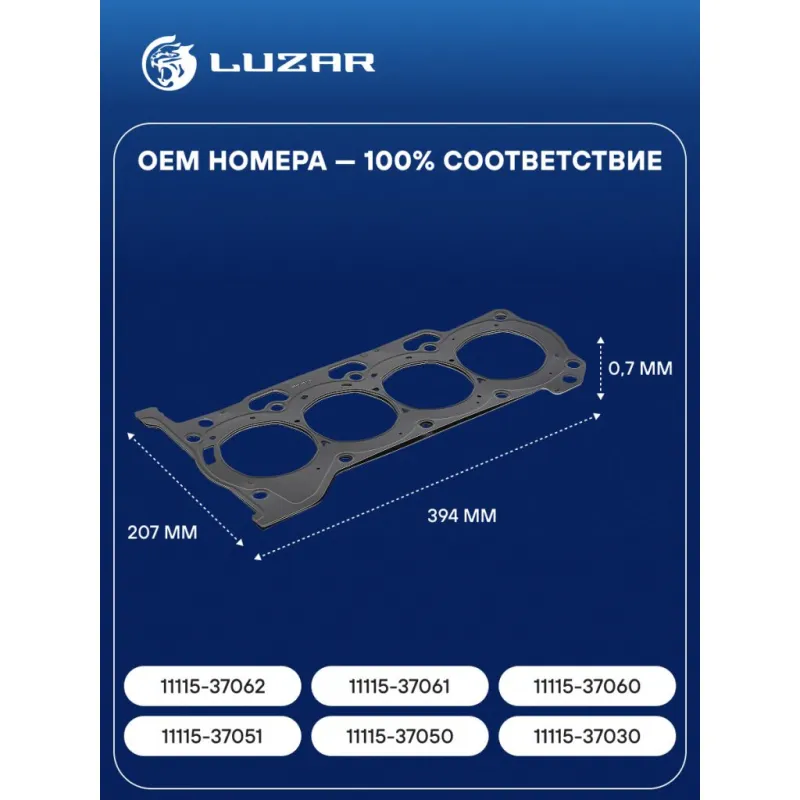 Прокладка ГБЦ для а/м Toyota Corolla (07-)/Corolla (13-)/Auris (06-)/Lexus NX (14-) 1.6i/2.0i [1ZR-FE] Характеристики: Артикул: LES 11901 OEM номера: 11115-37062, 11115-37061, 11115-37060, 11115-37051, 11115-37050, 11115-37030 Ширина, мм: 207 Длина, мм: 394 покрытие прокладки: полное FKM с двух сторон Прокладка, толщина,мм: 0.7 Количество на автомобиль: 1 Диаметр отверстий, мм: 81,5мм Количество слоев: 3 Материал прокладки: сталь Комплектация: Прокладка - 1 шт Гарантия: от 1 года.