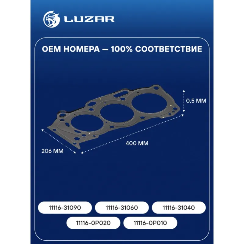Прокладка ГБЦ для а/м Toyota Highlander (07-)/Lexus RX (08-) 3.5i (лев.) [2GR] Характеристики: Артикул: LES 11913 OEM номера: 11116-31090, 11116-31060, 11116-31040, 11116-0P020, 11116-0P010 Ширина, мм: 206 Длина, мм: 400 Материал прокладки: сталь Диаметр отверстий, мм: 96 Количество слоев: 2 покрытие прокладки: полное FKM с двух сторон Прокладка, толщина,мм: 0,5 Количество на автомобиль: 1 Комплектация: Прокладка - 1 шт Гарантия: от 1 года.