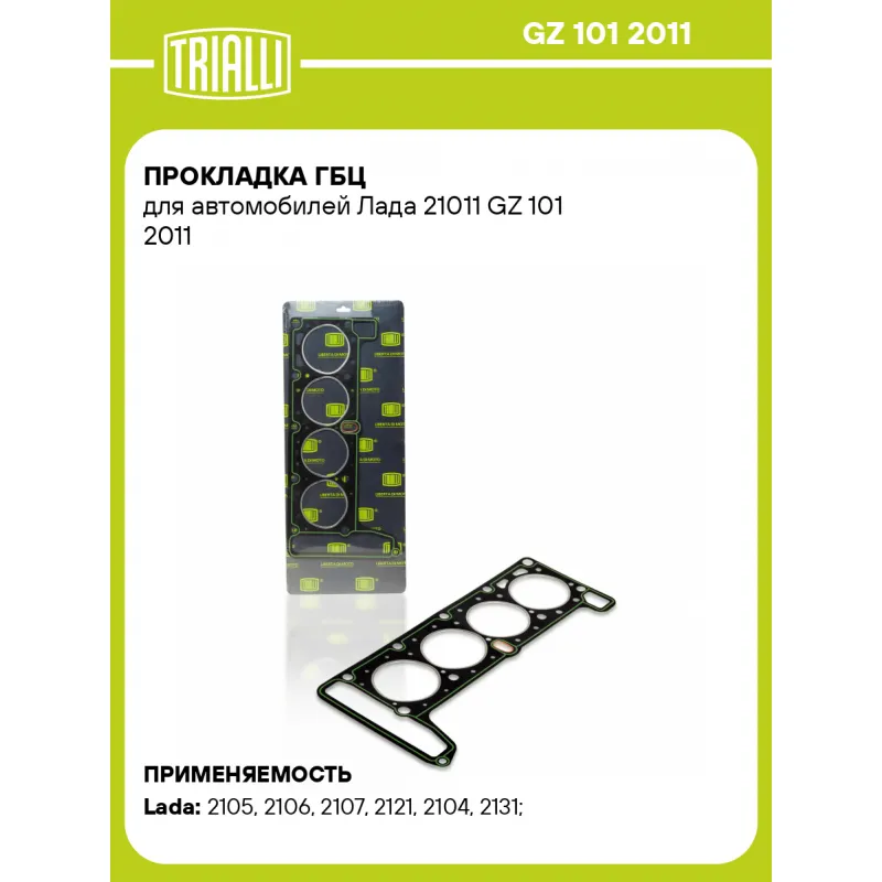 Прокладка ГБЦ для автомобилей Лада 21011 Характеристики: Артикул: GZ 101 2011 OEM номера: 21011-1003020 Гарантийный срок: 2 года/60 000 км. Количество на автомобиль: 1 Сопутствующие товары:: GZ 101 2020 Толщина, мм: 1,15 Толщина, мм (номинальная): 1,15 Материал: Безасбестовый Ширина в затяге, мм: 1.05 Диаметр (мм): 78 Длинна (размер резьбы): 79 mm. Трансмиссия: M ABS: - Подходит для авто: ВАЗ 2105, 2106, 2107, 2121, 2104, 2131 Для проверки применяемости отправьте VIN автомобиля через вкладку "Есть вопросы о товаре?" Гарантия: от 1 года.