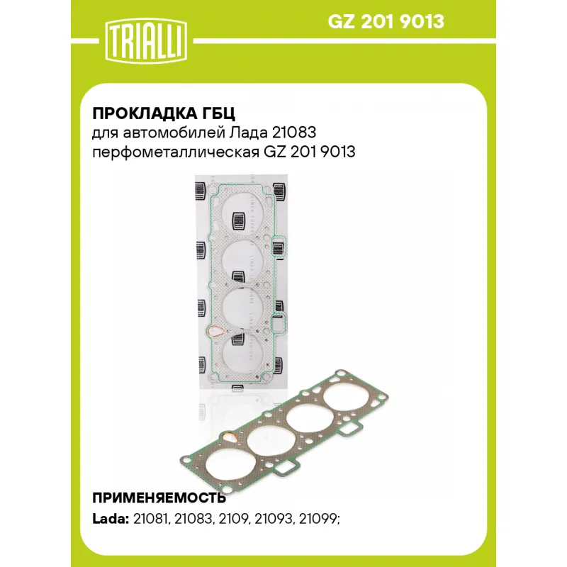 Прокладка ГБЦ для автомобилей Лада 21083 перфометаллическая Характеристики: Артикул: GZ 201 9013 OEM номера: 2108-1003020 Гарантийный срок: 2 года/60 000 км. Количество на автомобиль: 1 Толщина, мм: 1,75 Особенности конструкции:: d=82 мм Толщина, мм (номинальная): 1,6 Материал: перфометалл Ширина в затяге, мм: 1.47 Диаметр (мм): 78 Подходит для авто: ВАЗ 21081, 21083, 2109, 21093, 21099, 2108 Для проверки применяемости отправьте VIN автомобиля через вкладку "Есть вопросы о товаре?" Гарантия: от 1 года.