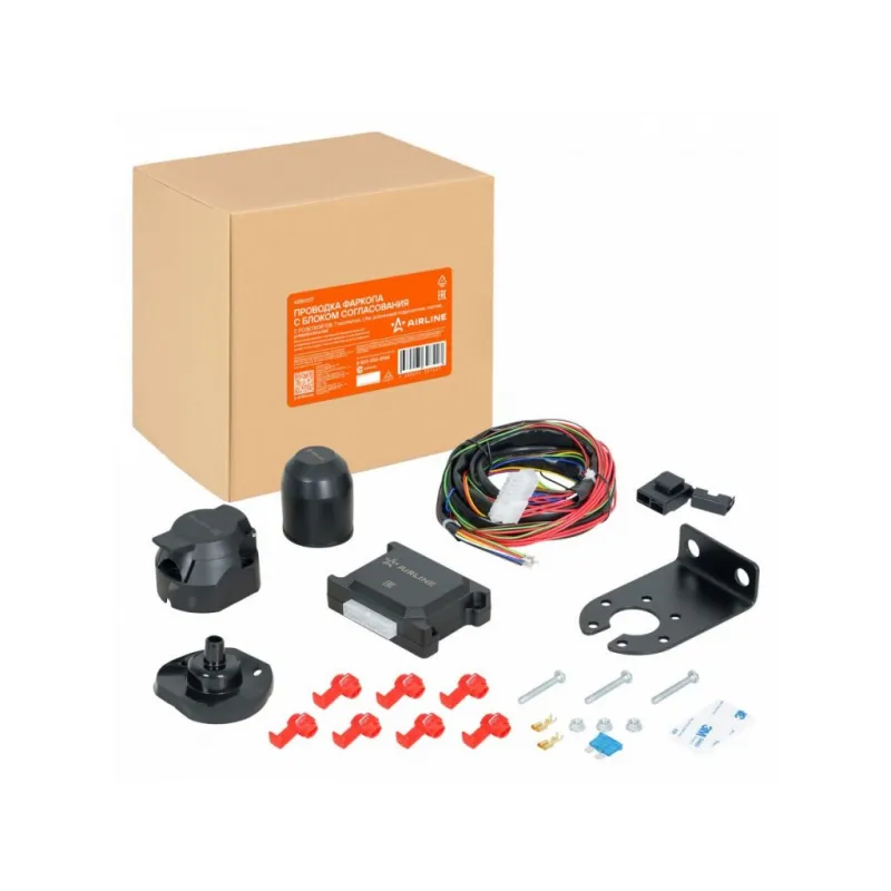 Проводка фаркопа с розеткой 12В 7 контакт. 1,9м с блоком согласования, усилен.подрозетник, колпак, универс. Описание: Блок согласования с проводкой предназначен для управления светотехникой прицепа от электрических цепей тягача через 7-ми контактную розетку фаркопа. Характеристики: Артикул: AEBI007 Количество контактов: 7 Материал корпуса: Пластик Длина кабеля, м: 1,9 Комплектация: Блок согласования - 1 шт Розетка - 1 шт Уплотнитель розетки - 1 шт Кабель - 1 шт Колпак на шар - 1 шт Подрозетник усиленный 3мм - 1 шт Клемма соединительная - 7 шт Винт - 3 шт Гайка - 3 шт Предохранитель 15А - 1 шт Держатель предохранителя - 1 шт Скотч двусторонний - 1 шт Паспорт - 1 шт Гарантия: от 1 года.