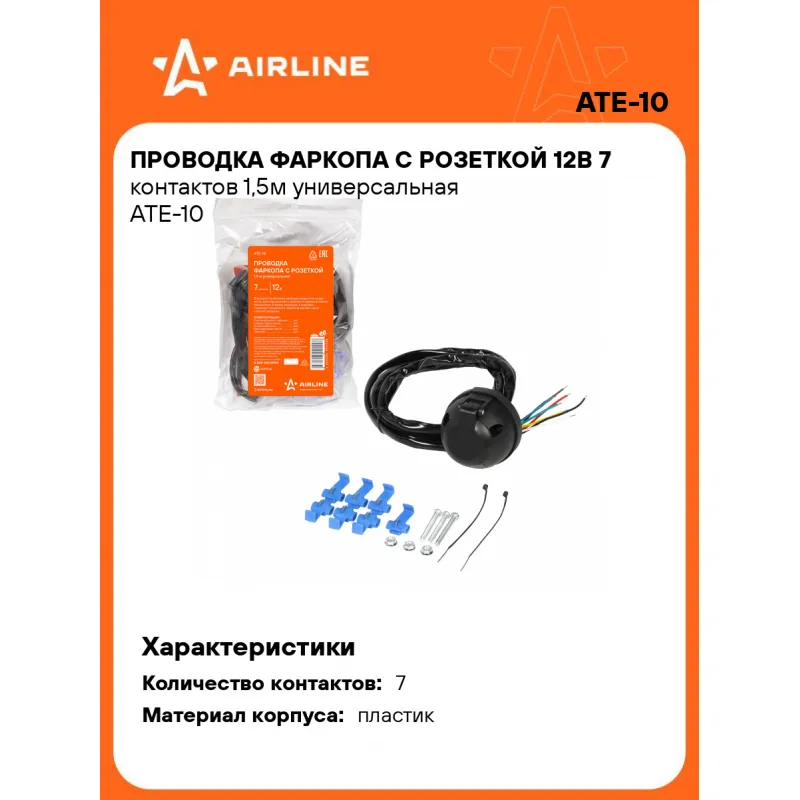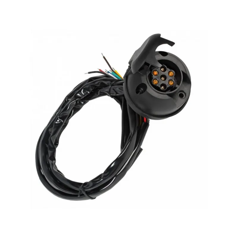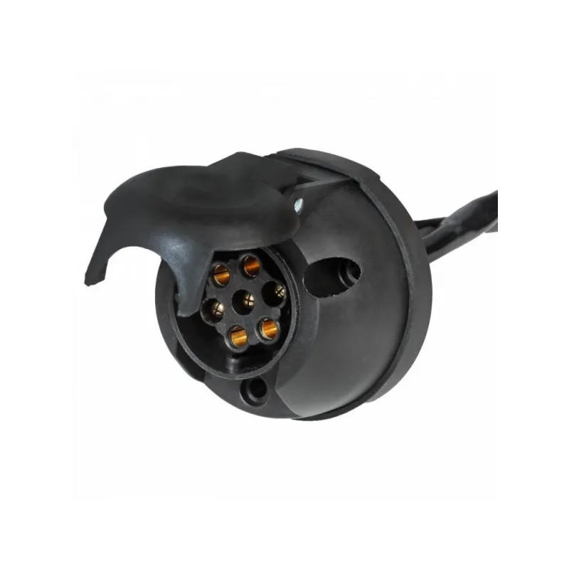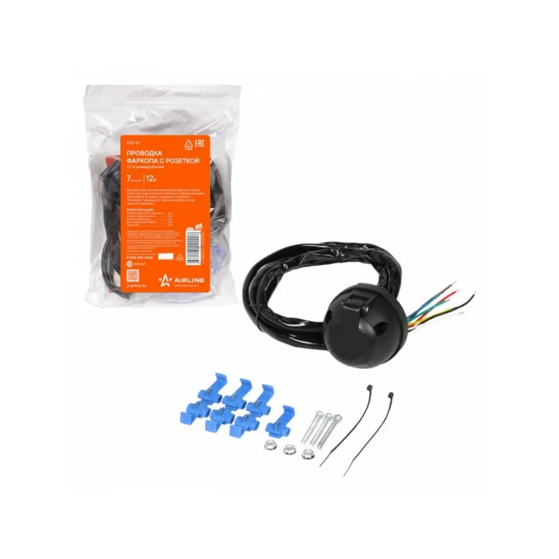 Проводка фаркопа с розеткой 12В 7 контактов 1,5м универсальная Описание: Корпус розетки выполнен из прочного пластика. Электрические разъёмы из латуни обеспечивают надёжный контакт. Резиновые уплотнители защищают от грязи и влаги. Провода и клеммы, входящие в комплект, позволяют без порчи штатной проводки автомобиля подключиться к проводам левого и правого фонарей. Характеристики: Артикул: ATE-10 Количество контактов: 7 Материал корпуса: пластик Длина кабеля, м: 1.5 Комплектация: Розетка фаркопа с кабелем - 1 шт Клемма подключения - 7 шт Стяжка кабельная - 4 шт Винт крепления М5х35 - 3 шт Гайка М5 - 3 шт Схема подключения - 1 шт Гарантия: от 1 года.