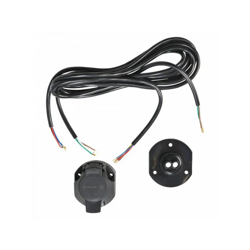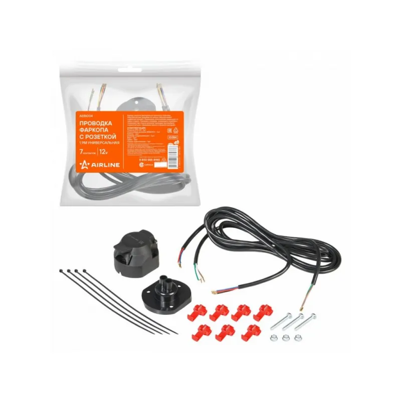 Проводка фаркопа с розеткой 12В 7 контактов 1,9м универсальная Описание: Корпус розетки выполнен из прочного пластика. Электрические разъёмы из латуни обеспечивают надёжный контакт. Резиновые уплотнители защищают от грязи и влаги. Провода и клеммы, входящие в комплект, позволяют без порчи штатной проводки автомобиля подключиться к проводам левого и правого фонарей. Характеристики: Артикул: AEBI004 Количество контактов: 7 Материал корпуса: Пластик Длина кабеля, м: 1,9 Комплектация: Розетка - 1 шт Уплотнитель розетки - 1 шт Кабель - 2 шт Клемма соединительная - 6 шт Винт - 3 шт Гайка - 3 шт Гарантия: от 1 года.