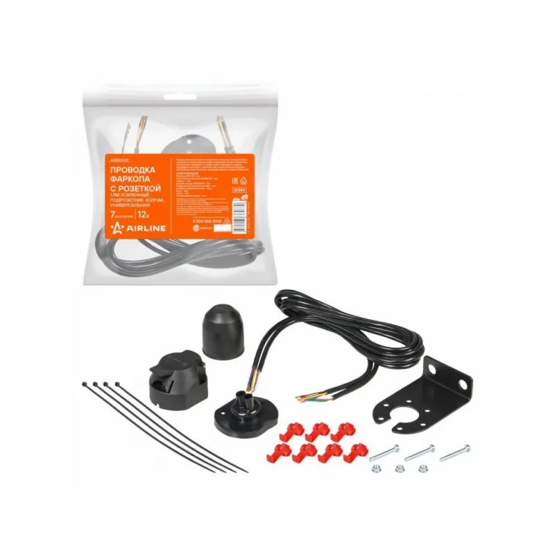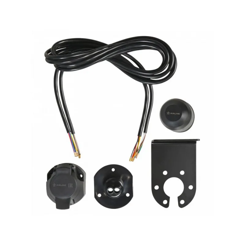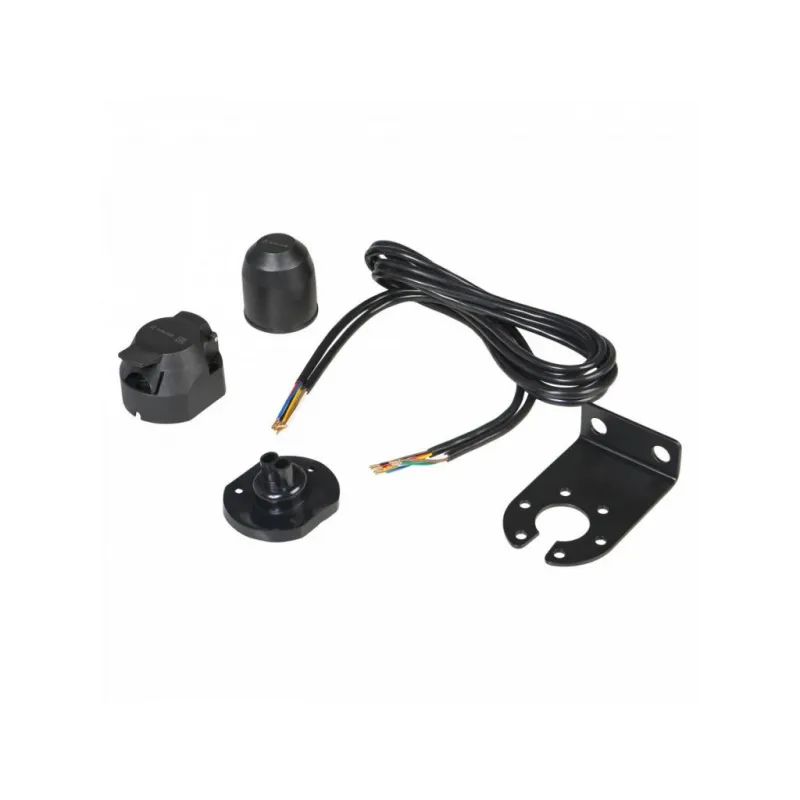 Проводка фаркопа с розеткой 12В 7 контактов 1,9м, усиленный подрозетник, колпак, универсальная Описание: Корпус розетки выполнен из прочного пластика. Электрические разъёмы из латуни обеспечивают надёжный контакт. Резиновые уплотнители защищают от грязи и влаги. Провода и клеммы, входящие в комплект, позволяют без порчи штатной проводки автомобиля подключиться к проводам левого и правого фонарей. Характеристики: Артикул: AEBI005 Количество контактов: 7 Материал корпуса: Пластик Длина кабеля, м: 1,9 Комплектация: Розетка - 1 шт Уплотнитель розетки - 1 шт Кабель - 2 шт Колпак на шар - 1 шт Подрозетник усиленный 3мм - 1 шт Клемма соединительная - 6 шт Винт - 3 шт Гайка - 3 шт Гарантия: от 1 года.