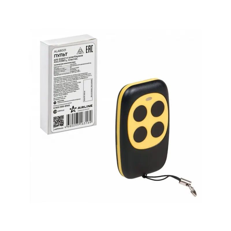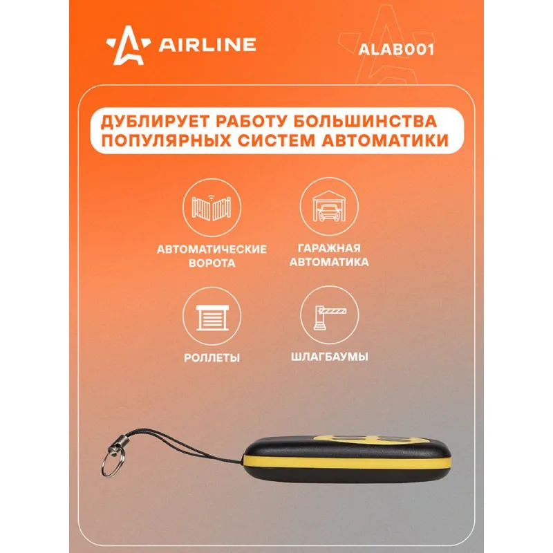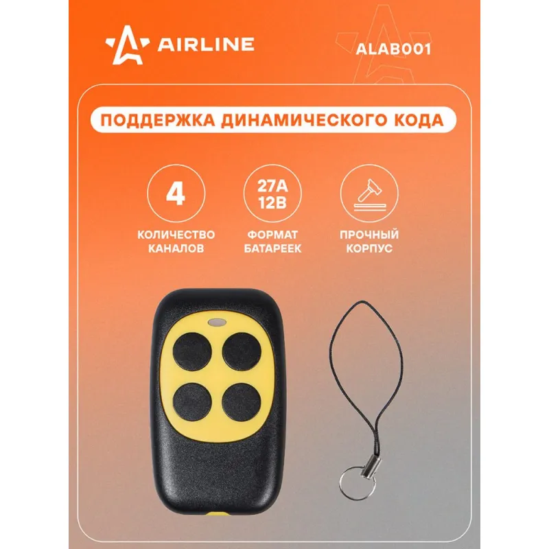 Пульт для ворот и шлагбаумов универсальный копирующий 433,92 МГц, (Apollo, Came, BFT) пласт. Описание: Пульт управления для ворот и шлагбаумов копирующий универсальный 433,92 MHz от бренда AIRLINE ALAB001 предназначен для копирования сигнала оригинального пульта управления автоматическими воротами, откатными воротами, гаражными дверями, шлагбаумами на частоте 433,92 MHz. Выходная мощность передатчика: 10 мВт (мощность излучения не более 10 мВт), код динамический, дальность сигнала 50 м. Эргономичный дизайн и небольшие размеры делают работу с устройством приятным и удобным. Особенности устройства: - Очень простое программирование; - Четырехканальный (Пульт может управлять до четырех различных типов объектов); - Поддержка копирования динамического кода; - Легкий пластиковый корпус, устойчивый к механическим ударам; - Питание - Батарея 27А 12В; - Надёжное поддержание программ в случае разряда батареи питания; Дублирует работу большинства дистанционных пультов, работающих на частоте 433,92 MHz. Заменяет такие популярные пульты как: Came TOP432NA, TOP432EV, TOP432EE, TAM432SA, TOP434NA, TOP434EE, DEA 623, BFT MITTO 2, MITTO 4, BENINCA LOT2WMS, TO GO WV, DOORHAN TX4, GSN, JOLLY Open, NICE FLO (FLO1, FLO2, FLO4), FLORS, SMILO, VERY VE, Apollo JOLLY, APOLLO JOY, Roger R80/TX102R, TX104R и многие другие. Товар официального производителя AIRLINE. Инструкция по установке и эксплуатации в комплекте. Пульт дистанционного управления станет отличным подарком автомобилисту, мужчине и женщине, автолюбителю, папе, отцу, мужу, парню и другу, повысит удобство пользования автомобилем. Характеристики: Артикул: ALAB001 Радиочастота, МГц: 433,92 Количество каналов: 4 Копирование кода: Да Питание: Батарея 27А 12В Вес, г: 38 Фиксированный код: Да Динамический (плавающий) код: Да Дальность сигнала, м: 50 Мин. температура эксплуатации, °С: -20 Выходная мощность передатчика, мВт: 10 Макс. температура эксплуатации, °С: 55 Длина, мм: 62 Высота, мм: 13 Ширина, мм: 37 Комплектация: Пульт - 1 шт Руководство по эксплуатации - 1 шт Гарантия: от 1 года.