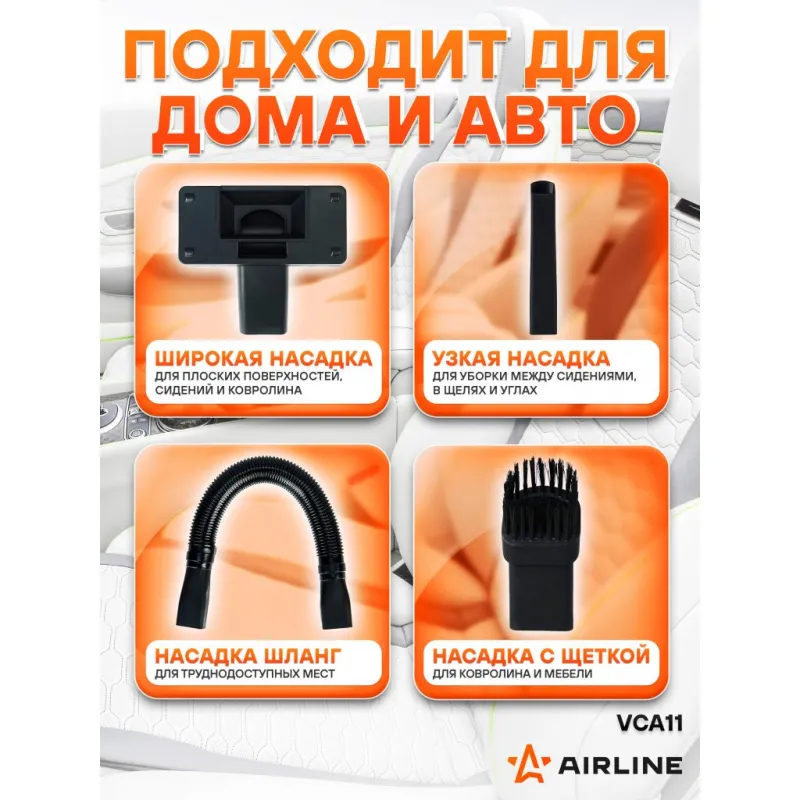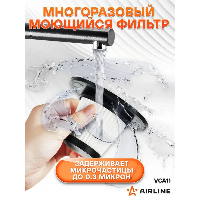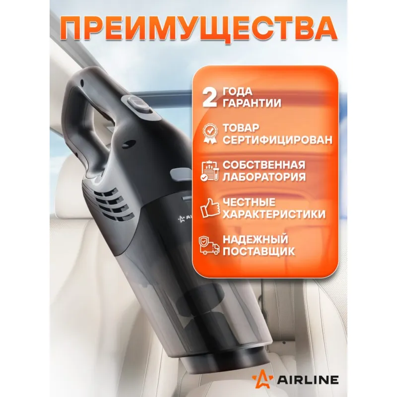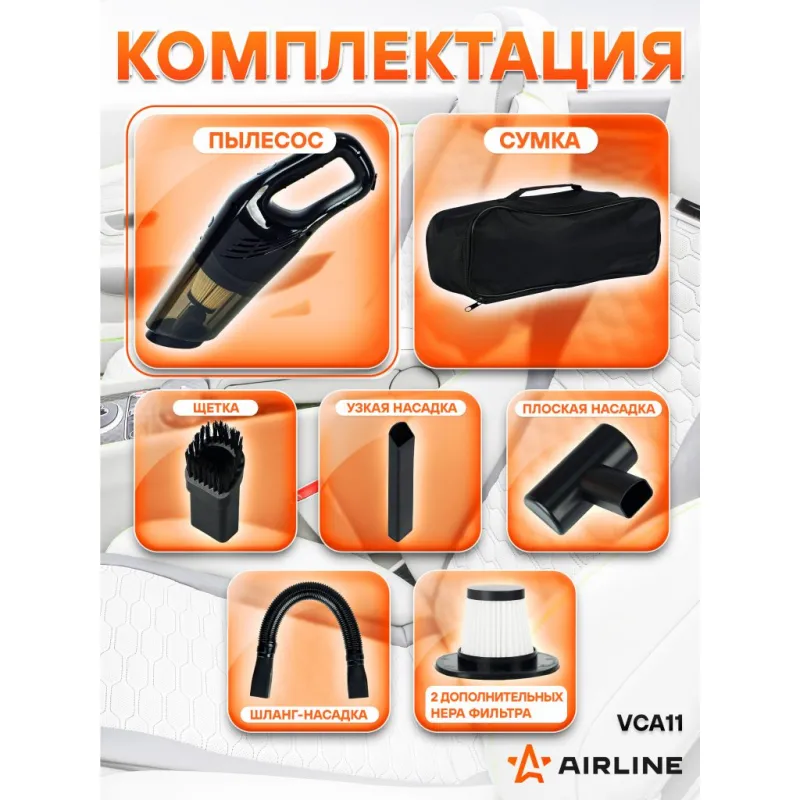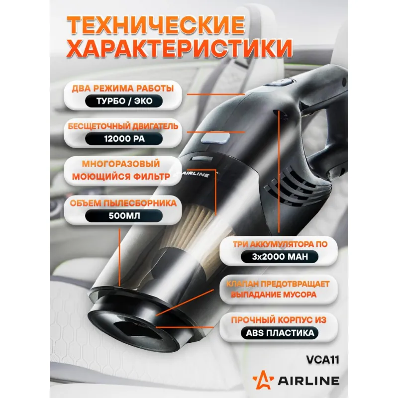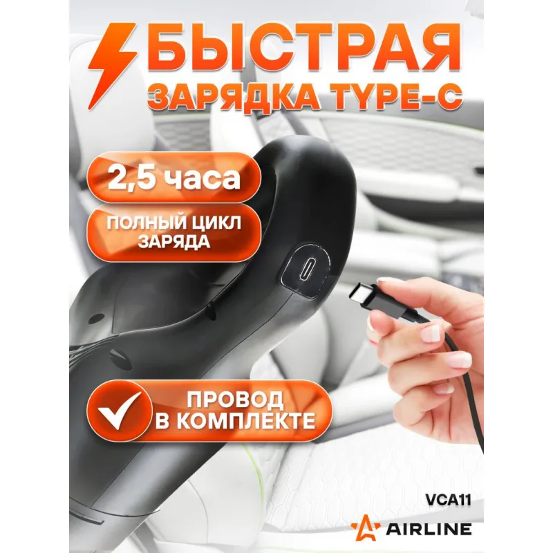 Пылесос аккумуляторный (беспроводной) STORM-A 12000PA PRO TURBO в сумке (120W, 0.5л, 2000 mAh) Описание: Беспроводной автомобильный ручной пылесос VCA11 бренда AIRLINE оснащен мощным двигателем 120 Вт с максимальным вакуумным давлением 12000 Па. Этого достаточно для эффективной уборки даже крупного мусора, такого как листья, камни и монеты. Время непрерывной работы от аккумулятора составляет более 30 минут, что позволяет вам без труда завершить уборку автомобиля любого размера. Для удобства хранения и эксплуатации он комплектуется отсоединяемым USB-кабелем питания длиной 0.5 м для зарядки. Корпус выполнен из прочного ABS-пластика, что особенно важно в условиях интенсивной эксплуатации. Прозрачный пылесборник в виде контейнера объемом 500 мл позволит вам легко контролировать его наполненность. Это поможет избежать падения мощности всасывания и высыпания мусора. Неоспоримым преимуществом пылесоса является сменный HEPA фильтр, который задерживает в пылесборнике даже мельчайшую пыль размером до 0,3 микрон. В комплект пылесоса входят 4 насадки, щеточка для чистки в труднодоступных местах, 2 сменных фильтра и сумка для хранения. Это практичное устройство с удобной ручкой и двумя режимами работы идеально подходит для очищения салона и приборной панели как легковых, так и грузовых автомобилей. Полезный и компактный аксессуар можно использовать не только в машине, гараже, но и для уборки дома. С его помощью вы сможете очистить от мусора мебель, матрас, кровать, поверхность дивана или кресла. Удобная техника для ухода за машиной станет универсальным подарком для автомобилиста. Характеристики: Артикул: VCA11 Мощность, Вт: 120 Максимальный ток, А: 17 Длина кабеля питания, м: 0,5 Максимальное вакуумное давление, Па: 12000 Напряжение питания, В: 7,4 Объем пылесборника, мл: 500 Тип фильтра: НЕРА фильтр (задерживает частицы до 0.3 мк) Тип аккумулятора: Li-ion Питание аккумулятора: от USB Комплектация: Кабель USB - 1 шт Гибкий шланг - 1 шт Коробка - 1 шт Насадка с узким носиком - 1 шт Насадка-щетка - 1 шт Насадка с широким носиком - 1 шт Пылесос автомобильный - 1 шт Инструкция - 1 шт Щетка щелевая - 1 шт Сумка - 1 шт Фильтр - 2 шт Гарантия: от 1 года.
