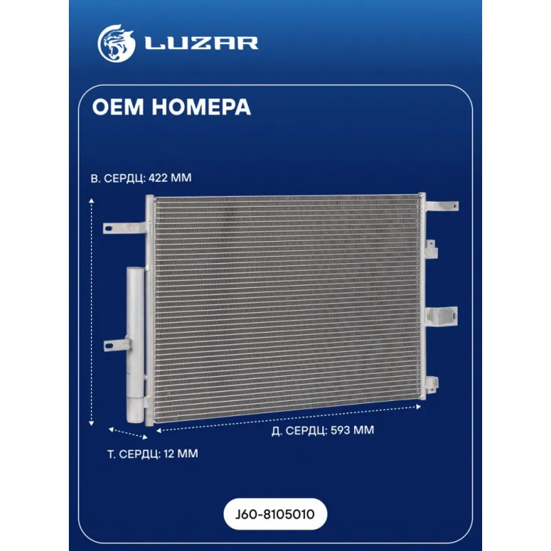 Радиатор кондиц. для автомобилей Chery Tiggo 4 (17-) 1.5i/2.0i Характеристики: Артикул: LRAC 3036 OEM номера: J60-8105010 Количество на автомобиль: 1 Длина сердцевины, мм: 593 Высота сердцевины, мм: 422 Толщина сердцевины, мм: 12 осушитель: + Подходит для авто: Chery Tiggo 4 (17-), Tiggo 4 Pro (20-) Для проверки применяемости отправьте VIN автомобиля через вкладку "Есть вопросы о товаре?" Комплектация: Паспорт изделия - 1 шт Радиатор кондиционера c ресивером - 1 шт Гарантия: от 1 года.