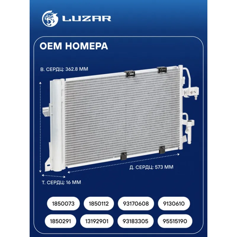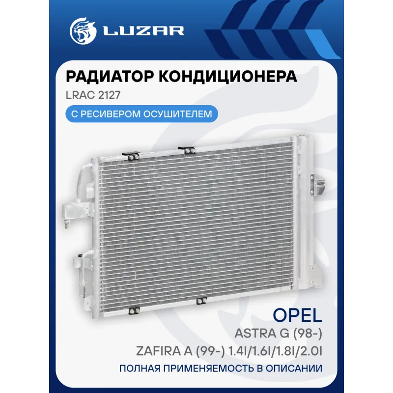 Радиатор кондиционера для автомобилей Astra G (98-)/Zafira A (99-) 1.4i/1.6i/1.8i/2.0i M/A Характеристики: Артикул: LRAC 2127 OEM номера: 1850073, 1850112, 93170608, 9130610, 1850291, 13192901, 93183305, 95515190 Количество на автомобиль: 1 Длина сердцевины, мм: 573 Высота сердцевины, мм: 362.8 Толщина сердцевины, мм: 16 Сопутствующий товар: Радиаторы охлаждения: LRc 21150; LRc 2149; LRc 2150 Сопутствующий товар: Компрессоры кондиционера: LCAC 2129 осушитель: + Подходит для авто: Opel Astra G (98-), Zafira A (99-), Astra G (98-), Zafira A (99-) Для проверки применяемости отправьте VIN автомобиля через вкладку "Есть вопросы о товаре?" Комплектация: Паспорт изделия - 1 шт Радиатор кондиционера c ресивером - 1 шт Гарантия: от 1 года.