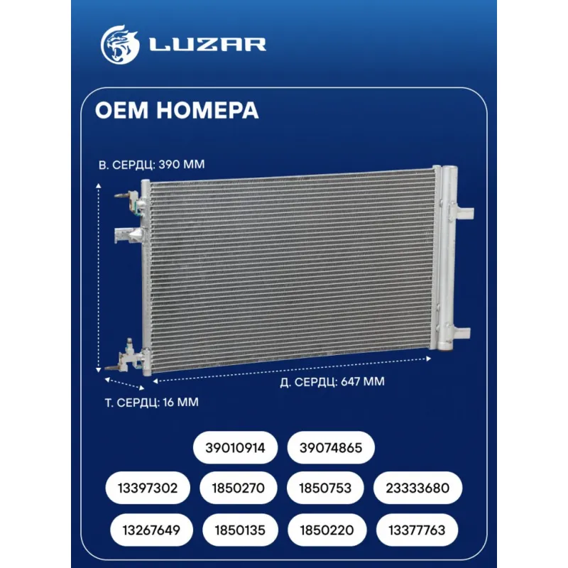 Радиатор кондиционера для автомобилей Astra J (10-) Turbo Характеристики: Артикул: LRAC 0552 OEM номера: 13267649, 1850135, 1850220, 13377763, 13397302, 1850270, 1850753, 23333680, 39010914, 39074865 Сопутствующий товар: Датчики давления хладагента: LRPS 2129 Количество на автомобиль: 1 Длина сердцевины, мм: 647 Высота сердцевины, мм: 390 Толщина сердцевины, мм: 16 Сопутствующий товар: Ресиверы-осушители: LCD 0801 Сопутствующий товар: Радиаторы охлаждения: LRc 0550; LRc 21106; LRc 2116; LRc 2117 Сопутствующий товар: Электровентиляторы охлаждения: LFc 0551; LFK 21106 Сопутствующий товар: Компрессоры кондиционера: LCAC 2107; LCAC 2131 Сопутствующий товар: Клапаны расширительные кондиционера (ТРВ): LTRV 0550 Комплектующие конденсера: LCD 0801 Ресивер: + Подходит для авто: Opel Zafira C (11-), Astra J (10-), Insignia (08-) Chevrolet Orlando (10-), Cruze (09-) Для проверки применяемости отправьте VIN автомобиля через вкладку "Есть вопросы о товаре?" Комплектация: Паспорт изделия - 1 шт Радиатор кондиционера c ресивером - 1 шт Гарантия: от 1 года.