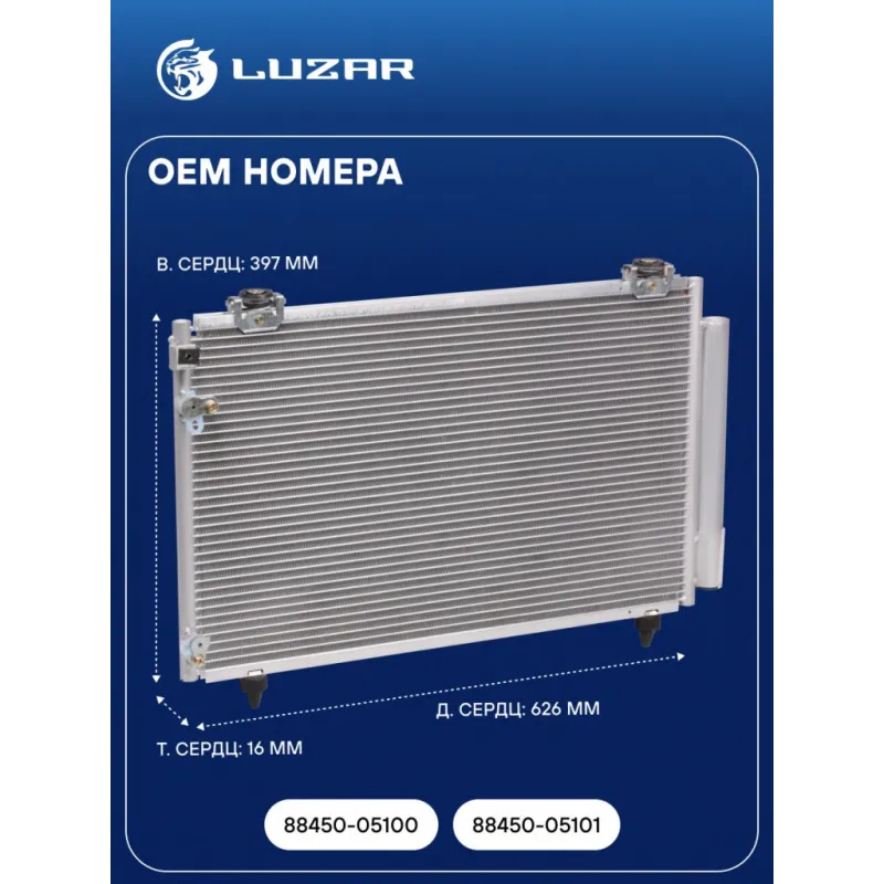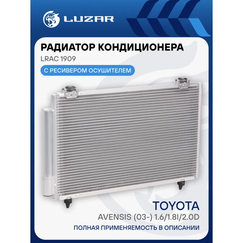Радиатор кондиционера для автомобилей Avensis (03-) 1.6/1.8i/2.0D Характеристики: Артикул: LRAC 1909 OEM номера: 88450-05100, 88450-05101 Количество на автомобиль: 1 Длина сердцевины, мм: 626 Высота сердцевины, мм: 397 Толщина сердцевины, мм: 16 Сопутствующий товар: Ресиверы-осушители: LCD 0214; LCD 1901 Сопутствующий товар: Радиаторы охлаждения: LRc 191D2; LRc 19D0 Сопутствующий товар: Компрессоры кондиционера: LCAC 1903 Сопутствующий товар: Клапаны расширительные кондиционера (ТРВ): LTRV 1189 Ресивер: + Подходит для авто: Toyota Avensis (03-), Avensis (03-) Для проверки применяемости отправьте VIN автомобиля через вкладку "Есть вопросы о товаре?" Комплектация: Паспорт изделия - 1 шт Радиатор кондиционера c ресивером - 1 шт Гарантия: от 1 года.