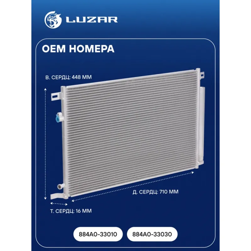 Радиатор кондиционера для автомобилей Camry (18-)/RAV4 (18-) Характеристики: Артикул: LRAC 1941 OEM номера: 884A0-33010, 884A0-33030 Комплектующие конденсера: LCD 0801 Количество на автомобиль: 1 Длина сердцевины, мм: 710 Высота сердцевины, мм: 448 Толщина сердцевины, мм: 16 Ресивер: + Подходит для авто: Toyota Camry (18-) Для проверки применяемости отправьте VIN автомобиля через вкладку "Есть вопросы о товаре?" Комплектация: Паспорт изделия - 1 шт Радиатор кондиционера c ресивером - 1 шт Гарантия: от 1 года.