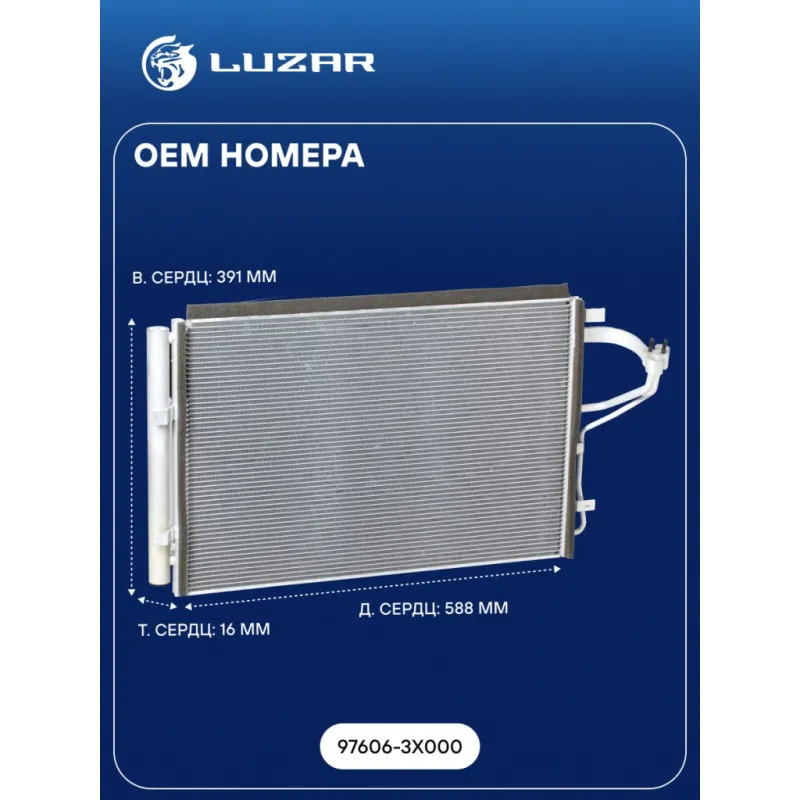 Радиатор кондиционера для автомобилей CEE'D/Elantra (11-) Характеристики: Артикул: LRAC 08X0 OEM номера: 97606-3X000 Количество на автомобиль: 1 Длина сердцевины, мм: 588 Высота сердцевины, мм: 391 Толщина сердцевины, мм: 16 Сопутствующий товар: Ресиверы-осушители: LCD 0801 Сопутствующий товар: Радиаторы охлаждения: LRc 0817; LRc 081X3; LRc 081X6; LRc 08X0; LRc 08X6 Сопутствующий товар: Электровентиляторы охлаждения: LFK 08X0 Сопутствующий товар: Компрессоры кондиционера: LCAC 0865 Сопутствующий товар: Клапаны расширительные кондиционера (ТРВ): LTRV 0865 Комплектующие конденсера: LCD 0801 Ресивер: + Сопутсвующий товар: Датчики давления хладагента: LRPS 0807 Подходит для авто: Hyundai i30 II (11-), Elantra V (11-) Kia CEE'D (12-), Cerato III (13-), Soul I (08-) Для проверки применяемости отправьте VIN автомобиля через вкладку "Есть вопросы о товаре?" Комплектация: Паспорт изделия - 1 шт Радиатор кондиционера c ресивером - 1 шт Гарантия: от 1 года.