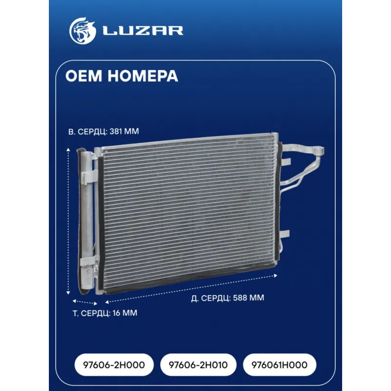 Радиатор кондиционера для автомобилей CEED (07-) Характеристики: Артикул: LRAC 08H2 OEM номера: 97606-2H000, 97606-2H010, 976061H000 Сопутствующий товар: Датчики давления хладагента: LRPS 0807 Количество на автомобиль: 1 Длина сердцевины, мм: 588 Высота сердцевины, мм: 381 Толщина сердцевины, мм: 16 Сопутствующий товар: Ресиверы-осушители: LCD 0801 Сопутствующий товар: Радиаторы охлаждения: LRc 0817; LRc 081X3; LRc 08X0; LRc KICd07110; LRc KICd07250 Сопутствующий товар: Электровентиляторы охлаждения: LFc 08H1; LFK 08H1; LFK 08X0 Сопутствующий товар: Компрессоры кондиционера: LCAC 0865; LCAC 08H1 Сопутствующий товар: Клапаны расширительные кондиционера (ТРВ): LTRV 0807; LTRV 0865 Ресивер: + Подходит для авто: Hyundai i30 I (07-), Elantra IV (06-), Avante HD (06-) Kia CEE'D (07-) Для проверки применяемости отправьте VIN автомобиля через вкладку "Есть вопросы о товаре?" Комплектация: Паспорт изделия - 1 шт Радиатор кондиционера c ресивером - 1 шт Гарантия: от 1 года.