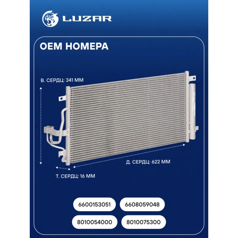 Радиатор кондиционера для автомобилей Coolray (19-) 1.5T Характеристики: Артикул: LRAC 3025 OEM номера: 8010054000, 8010075300, 6600153051, 6608059048 Количество на автомобиль: 1 Длина сердцевины, мм: 622 Высота сердцевины, мм: 341 Толщина сердцевины, мм: 16 Ресивер - осушитель: + Подходит для авто: Geely Coolray (18-), Emgrand II (21-) Для проверки применяемости отправьте VIN автомобиля через вкладку "Есть вопросы о товаре?" Комплектация: Паспорт изделия - 1 шт Радиатор кондиционера c ресивером - 1 шт Гарантия: от 1 года.
