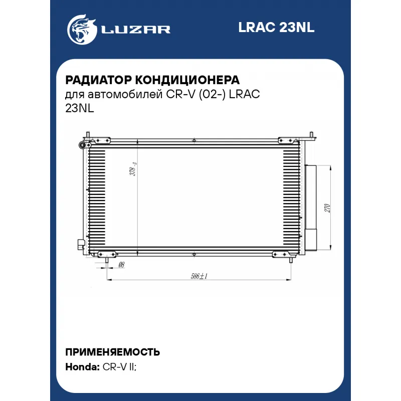 Радиатор кондиционера для автомобилей CR-V (02-) LRAC 23NL LUZAR