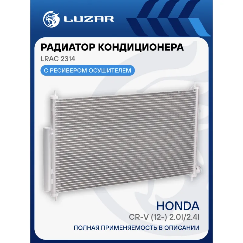 Радиатор кондиционера для автомобилей CR-V (12-) 2.0i/2.4i Характеристики: Артикул: LRAC 2314 OEM номера: 80110T1GG01, 80110T1GG02, 80110T0AA01 Количество на автомобиль: 1 Длина сердцевины, мм: 688 Высота сердцевины, мм: 379 Толщина сердцевины, мм: 16 Сопутствующий товар: Радиаторы охлаждения: LRc 2314 осушитель: + Подходит для авто: Honda CR-V IV (12-) Для проверки применяемости отправьте VIN автомобиля через вкладку "Есть вопросы о товаре?" Комплектация: Паспорт изделия - 1 шт Радиатор кондиционера c ресивером - 1 шт Гарантия: от 1 года.