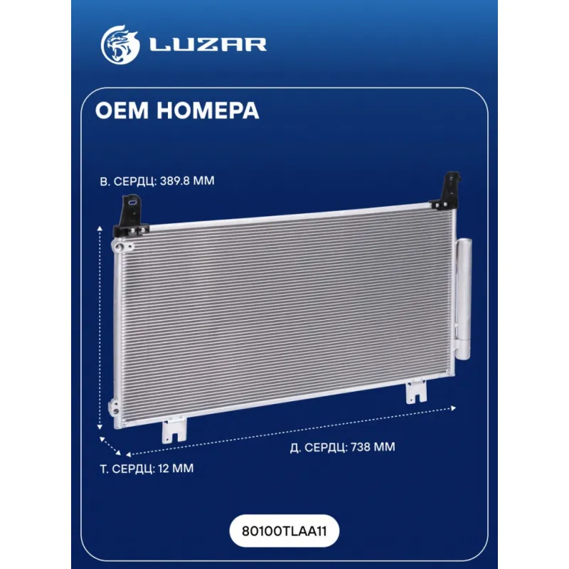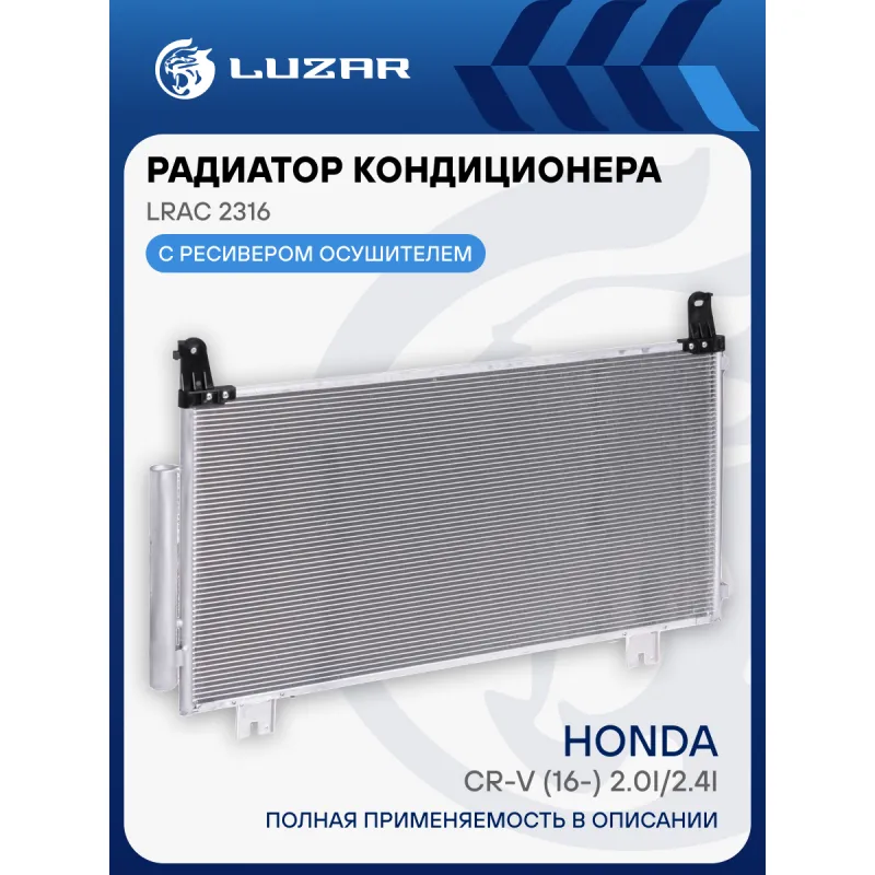 Радиатор кондиционера для автомобилей CR-V (16-) 2.0i/2.4i Характеристики: Артикул: LRAC 2316 OEM номера: 80100TLAA11 Количество на автомобиль: 1 Длина сердцевины, мм: 738 Высота сердцевины, мм: 389.8 Толщина сердцевины, мм: 12 осушитель: + Подходит для авто: Honda CR-V (16-) Для проверки применяемости отправьте VIN автомобиля через вкладку "Есть вопросы о товаре?" Комплектация: Радиатор кондиционера с ресивером Паспорт изделия Гарантия: от 1 года.