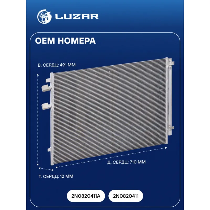 Радиатор кондиционера для автомобилей Crafter (16-) 2.0 TDi Характеристики: Артикул: LRAC 1899 OEM номера: 2N0820411A, 2N0820411 Количество на автомобиль: 1 Длина сердцевины, мм: 710 Высота сердцевины, мм: 491 Толщина сердцевины, мм: 12 Ресивер: + Подходит для авто: Volkswagen Crafter (16-) Для проверки применяемости отправьте VIN автомобиля через вкладку "Есть вопросы о товаре?" Комплектация: Паспорт изделия - 1 шт Радиатор кондиционера c ресивером - 1 шт Гарантия: от 1 года.