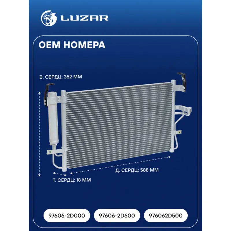 Радиатор кондиционера для автомобилей Elantra (00-) Характеристики: Артикул: LRAC 08D2 OEM номера: 97606-2D000, 97606-2D600, 976062D500 Комплектующие конденсера: LCR 1162 Количество на автомобиль: 1 Длина сердцевины, мм: 588 Высота сердцевины, мм: 352 Толщина сердцевины, мм: 18 Сопутствующий товар: Ресиверы-осушители: LCR 1162 Сопутствующий товар: Радиаторы охлаждения: LRc HUEl00100; LRc HUEl00150; LRc HUEl001D1; LRc HUEl00210; LRc HUEl00251; LRc HUEl002D2 Сопутствующий товар: Электровентиляторы кондиционера: LFAC 0803 Сопутствующий товар: Электровентиляторы охлаждения: LFc 08H1; LFK 0803; LFK 08H1 Сопутствующий товар: Компрессоры кондиционера: LCAC 0837; LCAC 08H1 Сопутствующий товар: Клапаны расширительные кондиционера (ТРВ): LTRV 0807 Ресивер: + Подходит для авто: Hyundai Elantra III (00-), Coupe II (01-), Tiburon (01-) Для проверки применяемости отправьте VIN автомобиля через вкладку "Есть вопросы о товаре?" Комплектация: Радиатор кондиционера в сборе с ресивером - 1 шт Паспорт изделия - 1 шт Радиатор кондиционера c ресивером - 1 шт Гарантия: от 1 года.