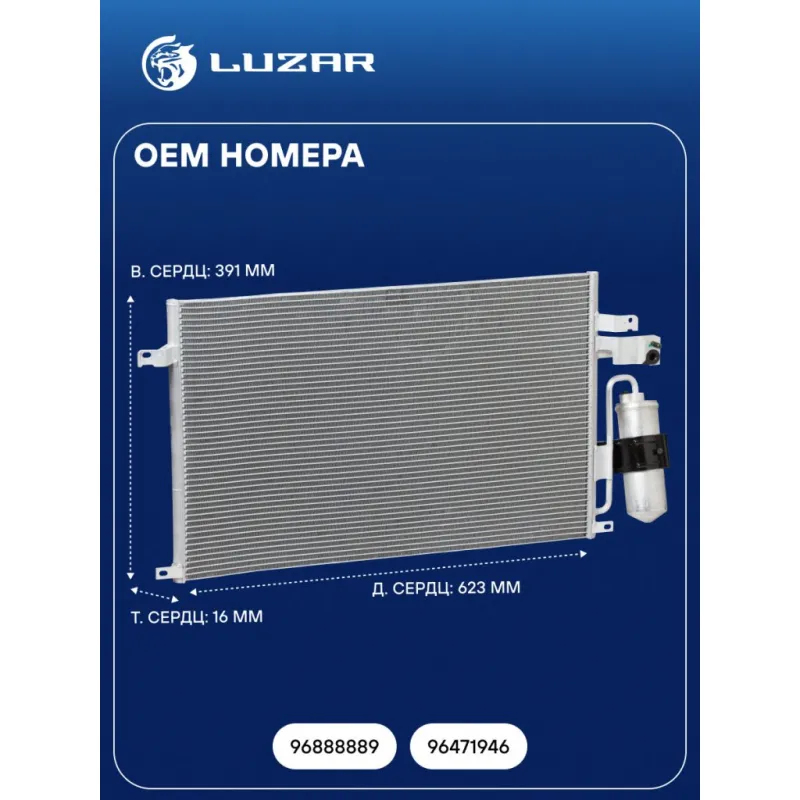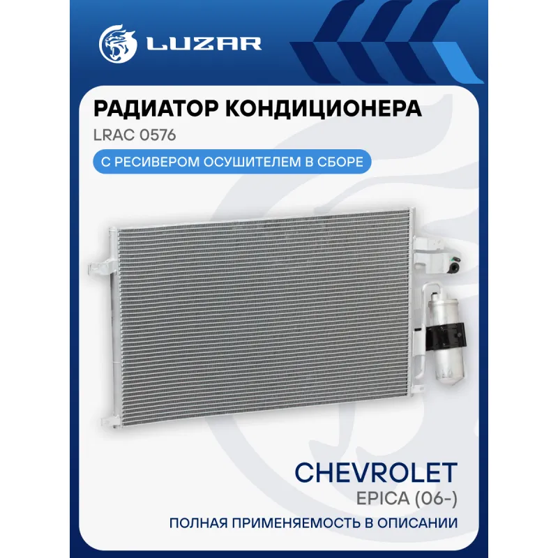 Радиатор кондиционера для автомобилей Epica (06-) Характеристики: Артикул: LRAC 0576 OEM номера: 96888889, 96471946 Количество на автомобиль: 1 Длина сердцевины, мм: 623 Высота сердцевины, мм: 391 Толщина сердцевины, мм: 16 Сопутствующий товар: Радиаторы охлаждения: LRc 05177; LRc 0576 Сопутствующий товар: Электровентиляторы охлаждения: LFK 0576 Сопутствующий товар: Компрессоры кондиционера: LCAC 0576 Ресивер: + Подходит для авто: Daewoo Tosca (06-), Magnus (00-) Chevrolet Epica (06-), Evanda (03-) Для проверки применяемости отправьте VIN автомобиля через вкладку "Есть вопросы о товаре?" Комплектация: Радиатор кондиционера в сборе с ресивером - 1 шт Паспорт изделия - 1 шт Радиатор кондиционера c ресивером - 1 шт Гарантия: от 1 года.