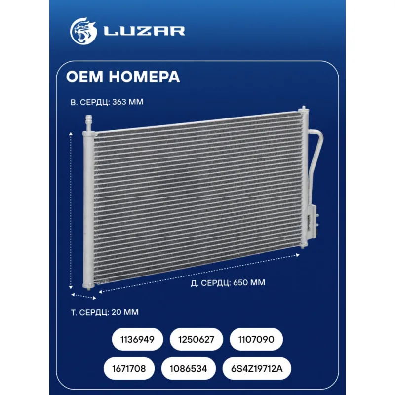 Радиатор кондиционера для автомобилей Focus I (98-) Характеристики: Артикул: LRAC FDFs98390 OEM номера: 1136949, 1250627, 1107090, 1671708, 1086534, 6S4Z19712A Количество на автомобиль: 1 Длина сердцевины, мм: 650 Высота сердцевины, мм: 363 Толщина сердцевины, мм: 20 Сопутствующий товар: Ресиверы-осушители: LCR 1001 Сопутствующи... Читать полностью →