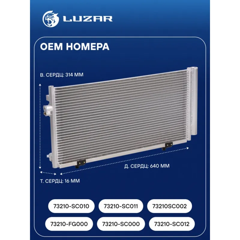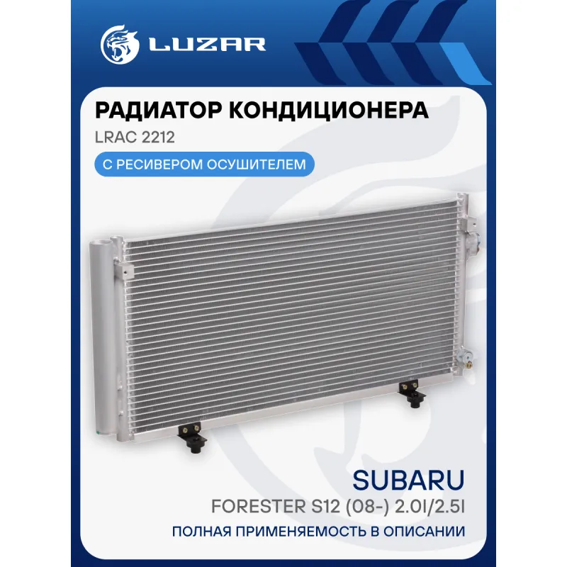 Радиатор кондиционера для автомобилей Forester S12 (08-) 2.0i/2.5i Характеристики: Артикул: LRAC 2212 OEM номера: 73210-FG000, 73210-SC000, 73210-SC012, 73210-SC010, 73210-SC011, 73210SC002 Количество на автомобиль: 1 Длина сердцевины, мм: 640 Высота сердцевины, мм: 314 Толщина сердцевины, мм: 16 Сопутствующий товар: Радиаторы охлаждения: LRc 22112; LRc 2212 Сопутствующий товар: Электровентиляторы охлаждения: LFK 2212 Сопутствующий товар: Компрессоры кондиционера: LCAC 2212 Ресивер: + Подходит для авто: Subaru Forester SH (08-), Impreza G12 (08-), XV (11-) Для проверки применяемости отправьте VIN автомобиля через вкладку "Есть вопросы о товаре?" Комплектация: Радиктор кондиционера с ресивером Паспорт изделия - 1 шт Радиатор кондиционера c ресивером - 1 шт Гарантия: от 1 года.