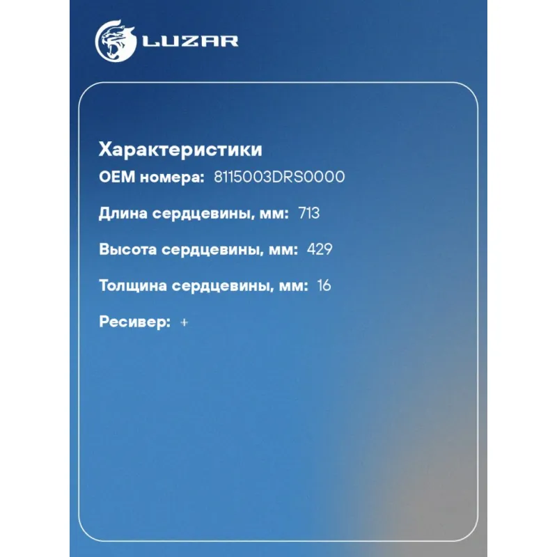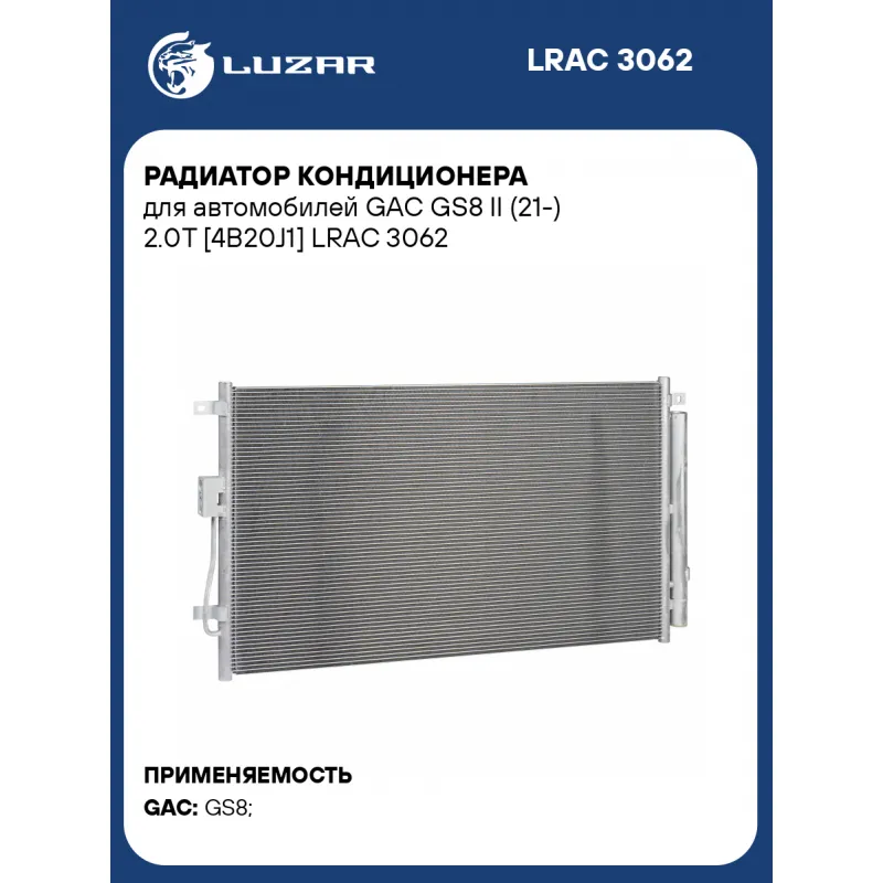 Радиатор кондиционера для автомобилей GAC GS8 II (21-) 2.0T [4B20J1] LRAC 3062 LUZAR