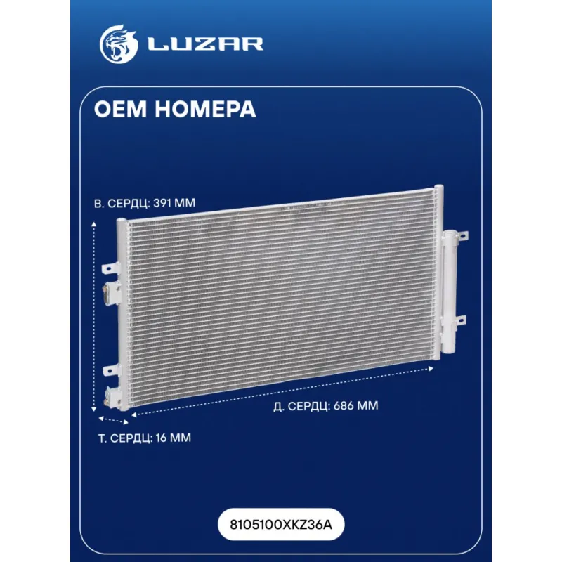 Радиатор кондиционера для автомобилей Haval H6 (14-) 1.5i Характеристики: Артикул: LRAC 3008 OEM номера: 8105100XKZ36A Количество на автомобиль: 1 Длина сердцевины, мм: 686 Высота сердцевины, мм: 391 Толщина сердцевины, мм: 16 осушитель: + Подходит для авто: Haval H6 (14-) Для проверки применяемости отправьте VIN автомобиля через вкладку "Есть вопросы о товаре?" Комплектация: Паспорт изделия - 1 шт Радиатор кондиционера c ресивером - 1 шт Гарантия: от 1 года.