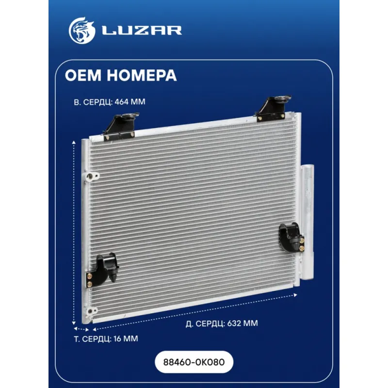 Радиатор кондиционера для автомобилей Hilux (04-) 2.5TD/3.0TD M/A Характеристики: Артикул: LRAC 1939 OEM номера: 88460-0K080 Количество на автомобиль: 1 Длина сердцевины, мм: 632 Высота сердцевины, мм: 464 Толщина сердцевины, мм: 16 Сопутствующий товар: Радиаторы охлаждения: LRc 1969 осушитель: + Подходит для авто: Toyota Hilux (05-) Для проверки применяемости отправьте VIN автомобиля через вкладку "Есть вопросы о товаре?" Комплектация: Паспорт изделия - 1 шт Радиатор кондиционера c ресивером - 1 шт Гарантия: от 1 года.