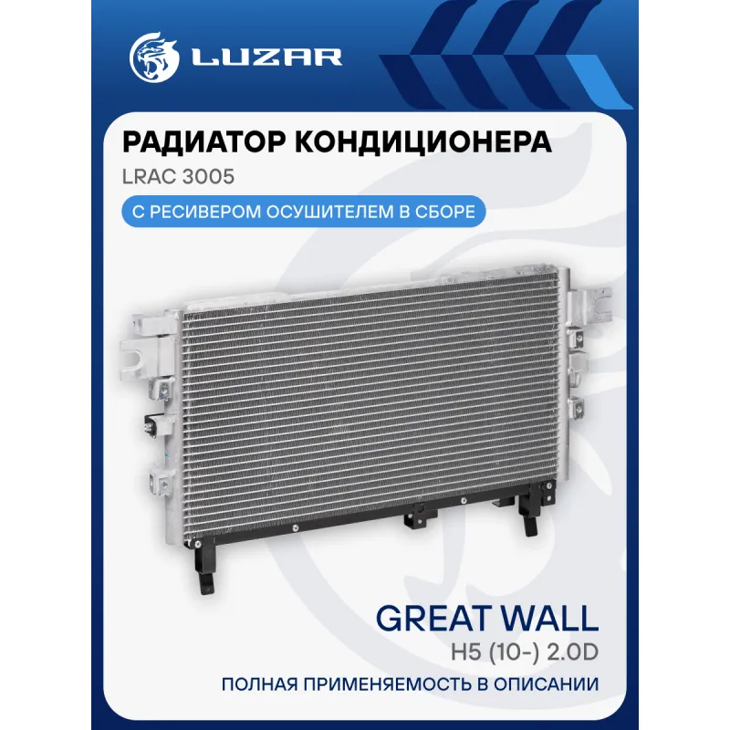Радиатор кондиционера для автомобилей Hover H5 (10-) 2.0D Характеристики: Артикул: LRAC 3005 OEM номера: 8105100K84 Количество на автомобиль: 1 Подходит для авто: Great Wall Hover H5 (11-) Для проверки применяемости отправьте VIN автомобиля через вкладку "Есть вопросы о товаре?" Комплектация: Радиатор кондиционера в сборе с ресивером - 1 шт Паспорт изделия - 1 шт Радиатор кондиционера c ресивером - 1 шт Гарантия: от 1 года.