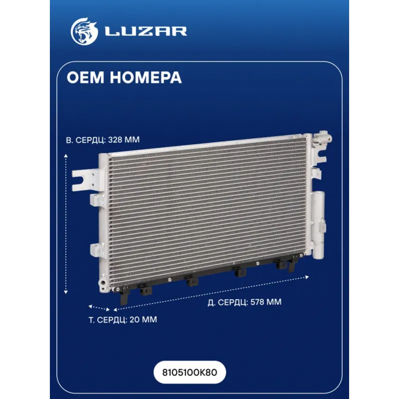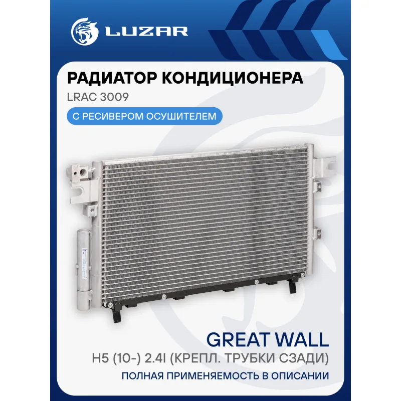 Радиатор кондиционера для автомобилей Hover H5 (10-) 2.4i (крепл. трубки сзади) Характеристики: Артикул: LRAC 3009 OEM номера: 8105100K80 Количество на автомобиль: 1 Длина сердцевины, мм: 578 Высота сердцевины, мм: 328 Толщина сердцевины, мм: 20 Ресивер - осушитель: + Подходит для авто: Great Wall Hover H5 (11-) Для проверки применяемости отправьте VIN автомобиля через вкладку "Есть вопросы о товаре?" Комплектация: Паспорт изделия - 1 шт Радиатор кондиционера c ресивером - 1 шт Гарантия: от 1 года.