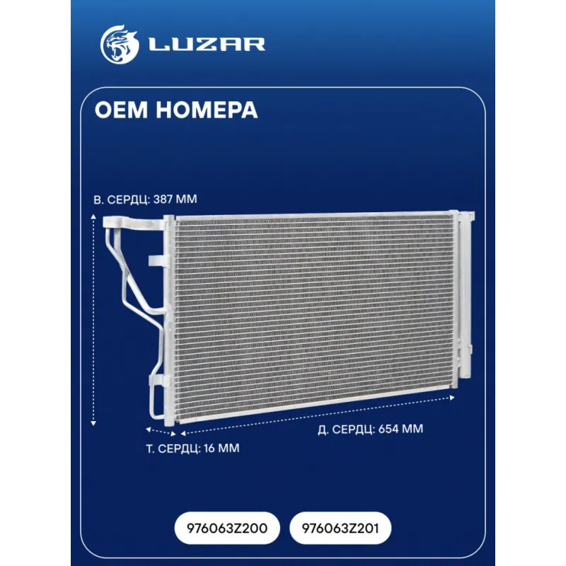 Радиатор кондиционера для автомобилей Hyundai i40 (11-) Характеристики: Артикул: LRAC 0841 OEM номера: 976063Z200, 976063Z201 Количество на автомобиль: 1 Длина сердцевины, мм: 654 Высота сердцевины, мм: 387 Толщина сердцевины, мм: 16 Сопутствующий товар: Радиаторы охлаждения: LRc 0814 Сопутствующий товар: Компрессоры кондиционера: LCAC 0841 Ресивер: + Подходит для авто: Hyundai i40 (11-) Для проверки применяемости отправьте VIN автомобиля через вкладку "Есть вопросы о товаре?" Комплектация: Паспорт изделия - 1 шт Радиатор кондиционера c ресивером - 1 шт Гарантия: от 1 года.
