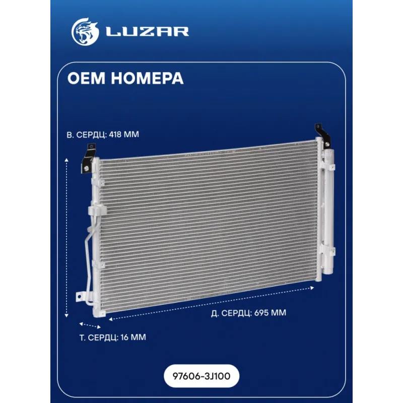 Радиатор кондиционера для автомобилей Hyundai iX55 (08-) Характеристики: Артикул: LRAC 0865 OEM номера: 97606-3J100 Комплектующие конденсера: LCD 0801 Количество на автомобиль: 1 Длина сердцевины, мм: 695 Высота сердцевины, мм: 418 Толщина сердцевины, мм: 16 Ресивер: + Подходит для авто: Hyundai iX55 (09-) Для проверки применяемости отправьте VIN автомобиля через вкладку "Есть вопросы о товаре?" Комплектация: Паспорт изделия - 1 шт Радиатор кондиционера c ресивером - 1 шт Гарантия: от 1 года.