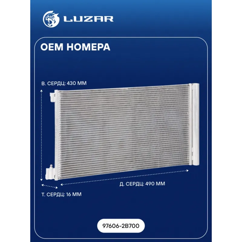 Радиатор кондиционера для автомобилей Hyundai Santa Fe (CM) (06-) 2.2D (выпуск с 2009г.) Характеристики: Артикул: LRAC 0858 OEM номера: 97606-2B700 Количество на автомобиль: 1 Длина сердцевины, мм: 490 Высота сердцевины, мм: 430 Толщина сердцевины, мм: 16 Ресивер - осушитель: + Подходит для авто: Hyundai Santa Fe II (06-) Для проверки применяемости отправьте VIN автомобиля через вкладку "Есть вопросы о товаре?" Комплектация: Паспорт изделия - 1 шт Радиатор кондиционера c ресивером - 1 шт Гарантия: от 1 года.