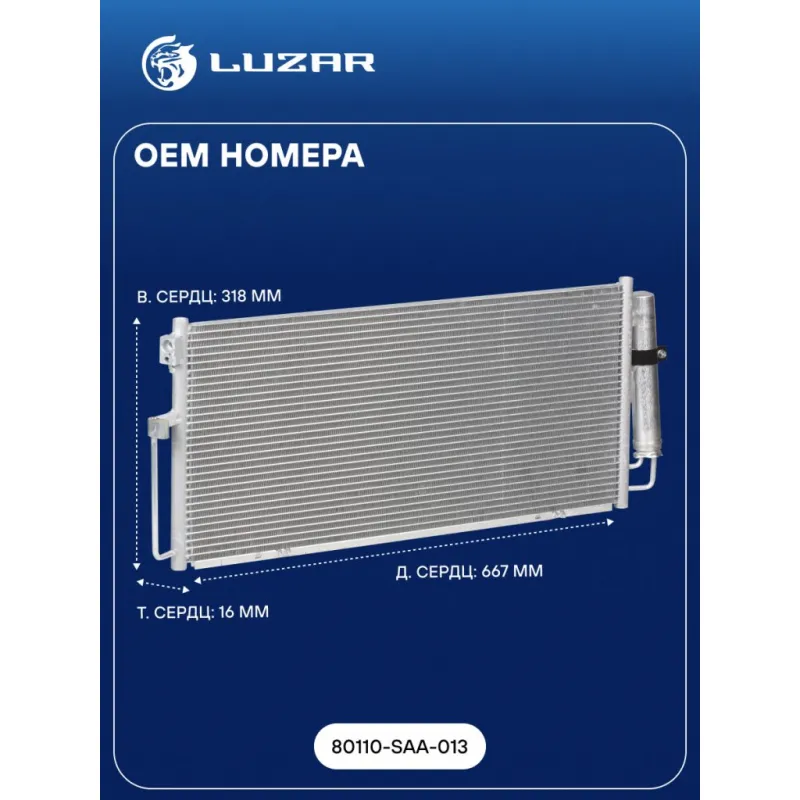 Радиатор кондиционера для автомобилей Impreza II (00-) Характеристики: Артикул: LRAC 2221 OEM номера: 73210-FE010 Количество на автомобиль: 1 Длина сердцевины, мм: 667 Высота сердцевины, мм: 318 Толщина сердцевины, мм: 16 осушитель: + Подходит для авто: Subaru Impreza G11 (00-) Для проверки применяемости отправьте VIN автомобиля через вкладку "Есть вопросы о товаре?" Комплектация: Радиатор кондиционера с ресивером в сборе - 1 шт Паспорт изделия - 1 шт Гарантия: от 1 года.