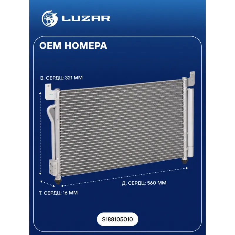 Радиатор кондиционера для автомобилей Indis S18D (10-) 1.3i LRAC 3010 LUZAR