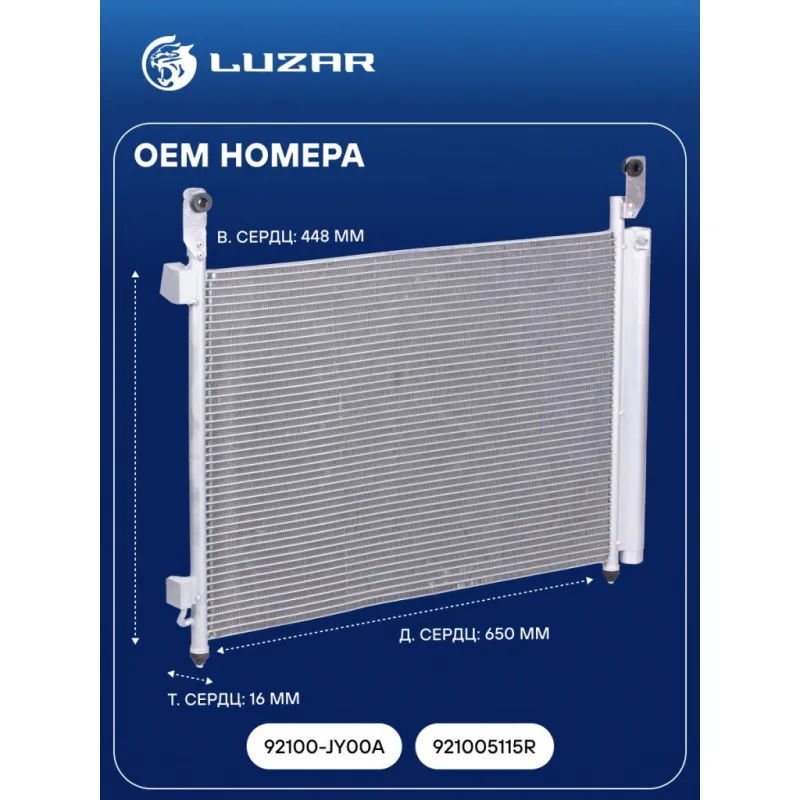 Радиатор кондиционера для автомобилей Koleos (08-) 2.0D/2.5i M/A Характеристики: Артикул: LRAC 0949 OEM номера: 92100-JY00A, 921005115R Сопутствующий товар: Компрессоры кондиционера: LCAC 0921 Комплектующие конденсера: LCD 0801 Количество на автомобиль: 1 Длина сердцевины, мм: 650 Высота сердцевины, мм: 448 Толщина сердцевины, мм: 16 Сопутствующий товар: Радиаторы охлаждения: LRc 0949 осушитель: + Подходит для авто: Renault Koleos (08-), Koleos (08-) Для проверки применяемости отправьте VIN автомобиля через вкладку "Есть вопросы о товаре?" Комплектация: Радиатор кондиционера с осушителем Паспорт изделия - 1 шт Радиатор кондиционера c ресивером - 1 шт Гарантия: от 1 года.