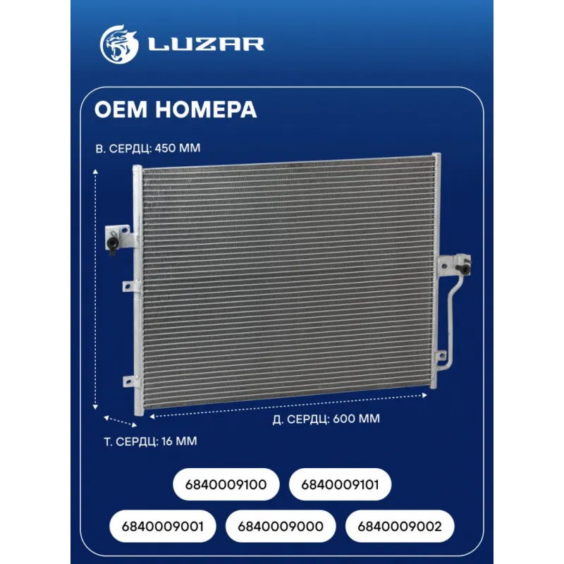 Радиатор кондиционера для автомобилей Kyron/Actyon (05-) Характеристики: Артикул: LRAC 1750 OEM номера: 6840009001, 6840009000, 6840009002, 6840009100, 6840009101 Количество на автомобиль: 1 Длина сердцевины, мм: 600 Высота сердцевины, мм: 450 Толщина сердцевины, мм: 16 Сопутствующий товар: Радиаторы охлаждения: LRc 17130; LRc 17131; LRc 1725; LRc 1731; LRc 1750 Сопутствующий товар: Электровентиляторы кондиционера: LFAC 1750 Сопутствующий товар: Клапаны расширительные кондиционера (ТРВ): LTRV 1750 Подходит для авто: SsangYong Actyon II (10-), Actyon Sport (05-), Actyon Sport II (12-), Kyron (05-), Actyon (05-) Для проверки применяемости отправьте VIN автомобиля через вкладку "Есть вопросы о товаре?" Комплектация: Радиатор кондиционера Паспорт изделия - 1 шт Радиатор кондиционера c ресивером - 1 шт Гарантия: от 1 года.