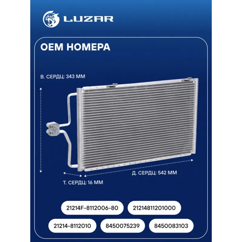 Радиатор кондиционера для автомобилей Lada 4x4 Urban Характеристики: Артикул: LRAC 01214 OEM номера: 21214F-8112006-80, 21214811201000, 21214-8112010, 8450075239, 8450083103 Сопутствующий товар: Радиаторы охлаждения: LRc 01214, LRc 0134; Сопутствующий товар: Электровентиляторы охлаждения: LFc 01214, LFK 01220, LFc 01215, LFK 01225; Сопутствующий товар: Компрессоры кондиционера: LCAC 01214 Сопутствующий товар: Ресиверы-осушители: LCR 1901 Количество на автомобиль: 1 Длина сердцевины, мм: 542 Высота сердцевины, мм: 343 Толщина сердцевины, мм: 16 Подходит для авто: ВАЗ 21214 Urban (14-) Для проверки применяемости отправьте VIN автомобиля через вкладку "Есть вопросы о товаре?" Комплектация: Радиатор кондиционера Паспорт изделия - 1 шт Радиатор кондиционера c ресивером - 1 шт Гарантия: от 1 года.