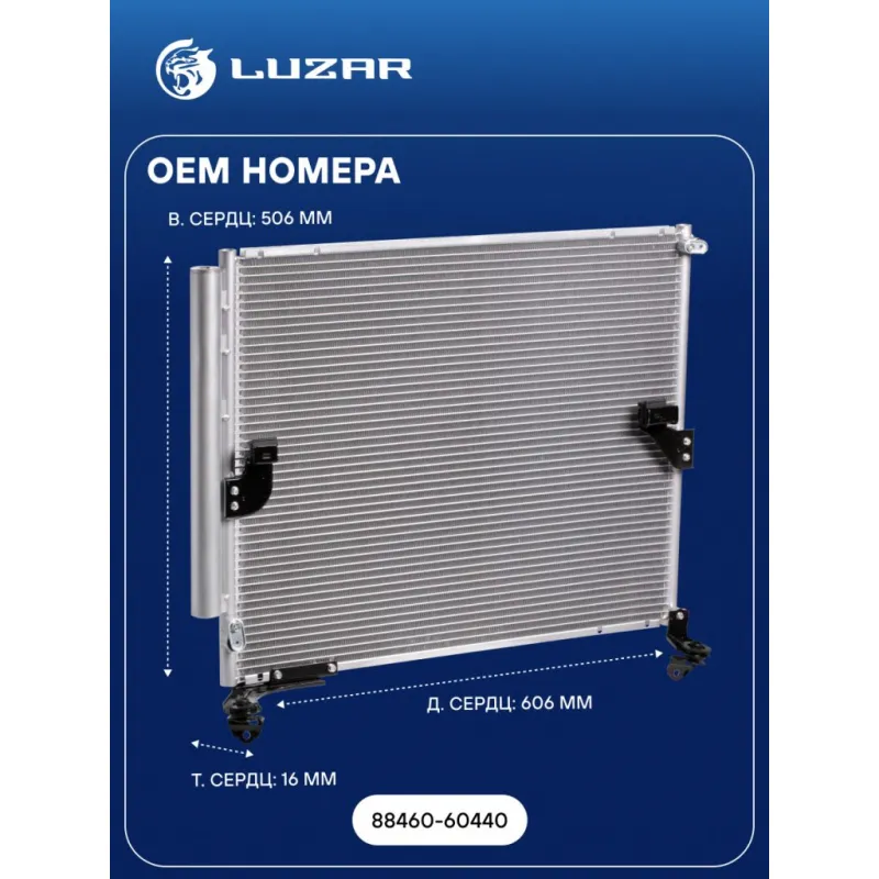 Радиатор кондиционера для автомобилей Land Cruiser Prado (09-) 2.7i/2.8D Характеристики: Артикул: LRAC 1973 OEM номера: 88460-60440 Количество на автомобиль: 1 Длина сердцевины, мм: 606 Высота сердцевины, мм: 506 Толщина сердцевины, мм: 16 Сопутствующий товар: Ресиверы-осушители: LCD 0214; LCD 1901 Сопутствующий товар: Радиаторы охлаждения: LRc 1973 Сопутствующий товар: Электровентиляторы кондиционера: LFAC 1972 Сопутствующий товар: Клапаны расширительные кондиционера (ТРВ): LTRV 1951; LTRV 1990 Ресивер: + Подходит для авто: Toyota Land Cruiser Prado 150 (09-) Для проверки применяемости отправьте VIN автомобиля через вкладку "Есть вопросы о товаре?" Комплектация: Паспорт изделия - 1 шт Радиатор кондиционера c ресивером - 1 шт Гарантия: от 1 года.
