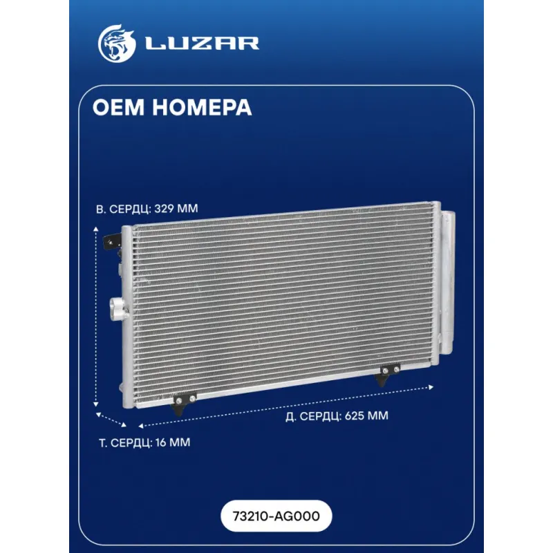 Радиатор кондиционера для автомобилей Legacy (03-)/Outback (03-) 2.0i/2.5i/3.0i Характеристики: Артикул: LRAC 2201 OEM номера: 73210-AG000 Количество на автомобиль: 1 Длина сердцевины, мм: 625 Высота сердцевины, мм: 329 Толщина сердцевины, мм: 16 осушитель: + Подходит для авто: Subaru Legacy B13 (03-), Outback B13 (03-) Для проверки применяемости отправьте VIN автомобиля через вкладку "Есть вопросы о товаре?" Комплектация: Паспорт изделия - 1 шт Радиатор кондиционера c ресивером - 1 шт Гарантия: от 1 года.