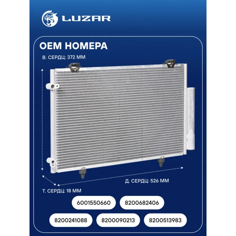 Радиатор кондиционера для автомобилей Logan (04-) Характеристики: Артикул: LRAC RELo04360 OEM номера: 8200241088, 8200090213, 8200513983, 6001550660, 8200682406 Количество на автомобиль: 1 Длина сердцевины, мм: 526 Высота сердцевины, мм: 372 Толщина сердцевины, мм: 18 Сопутствующий товар: Ресиверы-осушители: LCR 0960 Сопутствующий товар: Радиаторы охлаждения: LRc 0905; LRc 0908; LRc 09198; LRc 0938; LRc RELo04334; LRc RELo04382; LRc RELo08139 Сопутствующий товар: Электровентиляторы охлаждения: LFc 0951; LFc 0952; LFc 0955; LFc 0966; LFc 0969; LFc 0970; LFK 09198 Сопутствующий товар: Компрессоры кондиционера: LCAC 0998 Сопутствующий товар: Клапаны расширительные кондиционера (ТРВ): LTRV 0998 Комплектующие конденсера: LCR 0960 Ресивер: + Подходит для авто: Renault Kangoo (97-), Logan (04-), Clio II (98-), Clio Symbol (01-), Symbol (01-) Dacia Logan (04-) Для проверки применяемости отправьте VIN автомобиля через вкладку "Есть вопросы о товаре?" Комплектация: Радиатор кондиционера в сборе с ресивером - 1 шт Паспорт изделия - 1 шт Радиатор кондиционера c ресивером - 1 шт Гарантия: от 1 года.