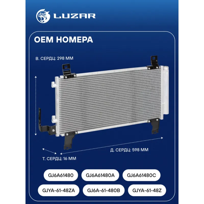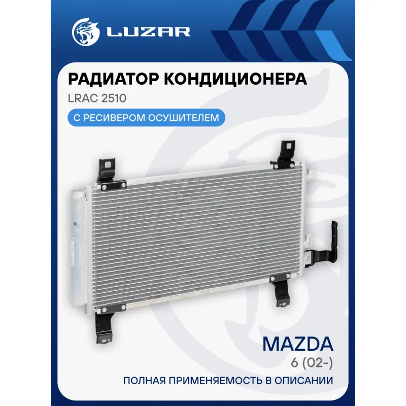 Радиатор кондиционера для автомобилей Mazda 6 (02-) Характеристики: Артикул: LRAC 2510 OEM номера: GJYA-61-48ZA, GJ6A-61-480B, GJYA-61-48Z, GJ6A61480, GJ6A61480A, GJ6A61480C Комплектующие конденсера: LCD 0801 Количество на автомобиль: 1 Длина сердцевины, мм: 598 Высота сердцевины, мм: 298 Толщина сердцевины, мм: 16 Сопутствующий товар: Ресиверы-осушители: LCR 2501 Сопутствующий товар: Радиаторы охлаждения: LRc 25FA Сопутствующий товар: Электровентиляторы охлаждения: LFK 25FA Сопутствующий товар: Компрессоры кондиционера: LCAC 2515 Сопутствующий товар: Клапаны расширительные кондиционера (ТРВ): LTRV 2530 Ресивер: + Подходит для авто: Mazda 6 (02-), 6 (02-) Для проверки применяемости отправьте VIN автомобиля через вкладку "Есть вопросы о товаре?" Комплектация: Радиатор кондиционера c ресивером - 1 шт Паспорт изделия - 1 шт Гарантия: от 1 года.