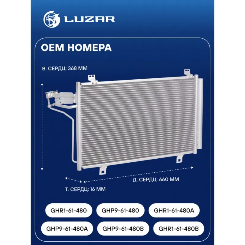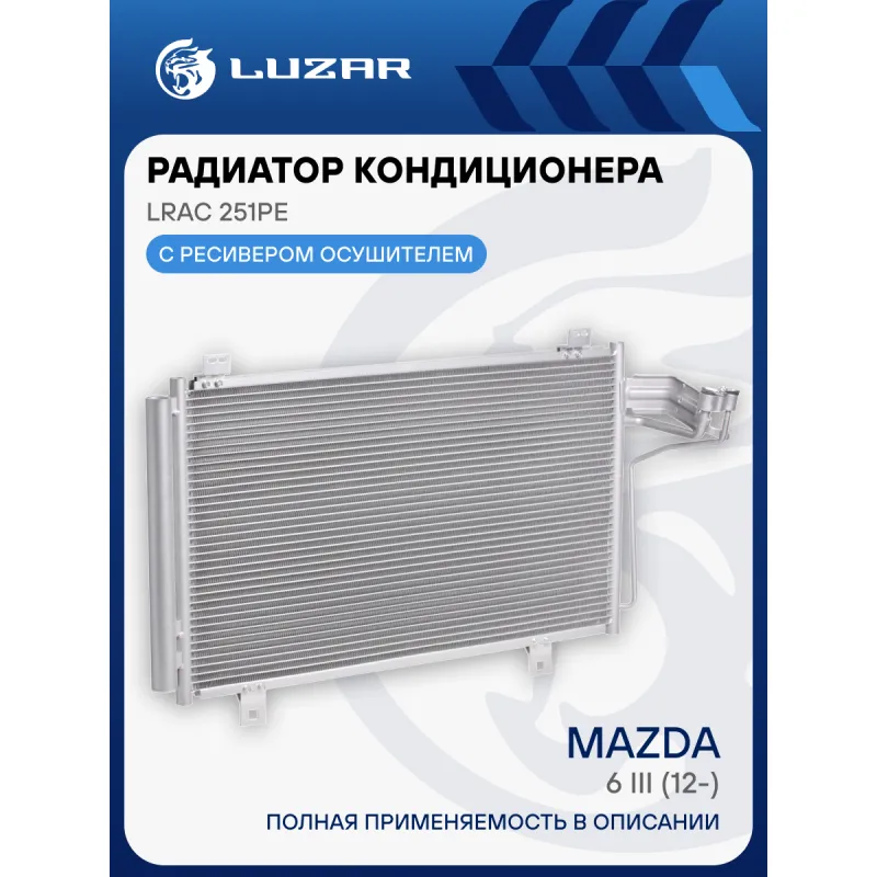 Радиатор кондиционера для автомобилей Mazda 6 III (12-) Характеристики: Артикул: LRAC 251PE OEM номера: GHR1-61-480, GHP9-61-480, GHR1-61-480A, GHP9-61-480A, GHP9-61-480B, GHR1-61-480B Количество на автомобиль: 1 Длина сердцевины, мм: 660 Высота сердцевины, мм: 368 Толщина сердцевины, мм: 16 Сопутствующий товар: Радиаторы охлаждения: LRc 251PE; LRc 2530 Сопутствующий товар: Электровентиляторы охлаждения: LFK 2570 Ресивер: + Подходит для авто: Mazda 6 (13-), 3 (13-) Для проверки применяемости отправьте VIN автомобиля через вкладку "Есть вопросы о товаре?" Комплектация: Паспорт изделия - 1 шт Радиатор кондиционера c ресивером - 1 шт Гарантия: от 1 года.