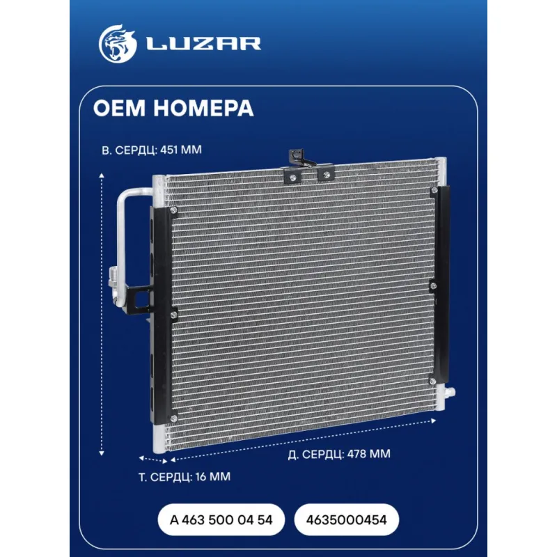 Радиатор кондиционера для автомобилей Mercedes-Benz G (W463) (90-) Характеристики: Артикул: LRAC 1550 OEM номера: A 463 500 04 54, 4635000454 Количество на автомобиль: 1 Длина сердцевины, мм: 478 Высота сердцевины, мм: 451 Толщина сердцевины, мм: 16 Сопутствующий товар: Ресиверы-осушители: LCR 1506 Сопутствующий товар: Компрессоры кондиционера: LCAC 15164 Сопутствующий товар: Клапаны расширительные кондиционера (ТРВ): LTRV 1550 осушитель: - Подходит для авто: Mercedes-Benz G W463 (90-) Для проверки применяемости отправьте VIN автомобиля через вкладку "Есть вопросы о товаре?" Комплектация: Радиатор кондиционера Паспорт изделия - 1 шт Радиатор кондиционера c ресивером - 1 шт Гарантия: от 1 года.